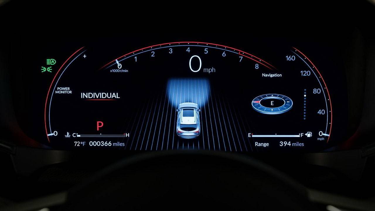 Впервые на машине японской марки появились цифровые приборы, причем, на 12,3-дюймовом дисплее могут отображаться сразу несколько вариантов «картинки». Такого же размера центральный дисплей возвышается над торпедо, но на дореформенной машине он прятался под козырек.