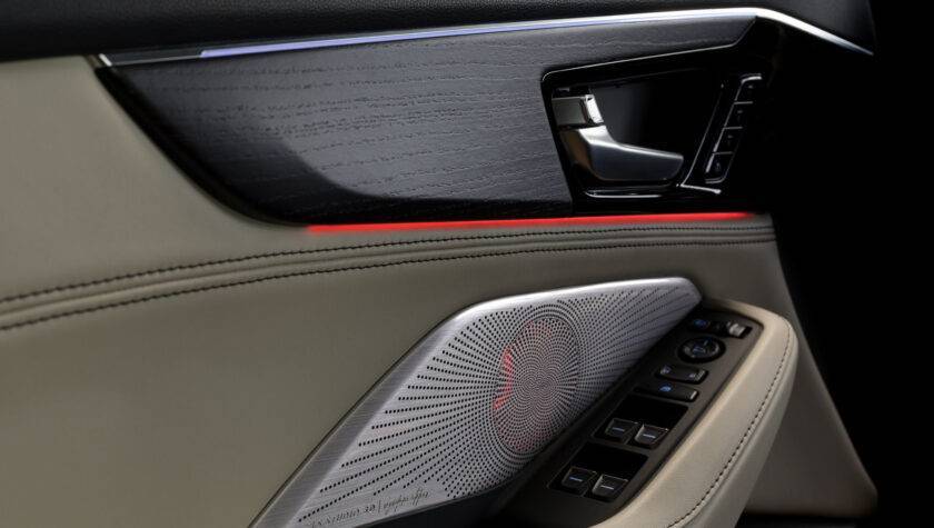 Отделка с применением дерева и натуральной кожи, передние кресла с вибромассажем, панорамная крыша, мощный аудиокомплекс на 1000 Ватт, акустика с 25 динамиками.