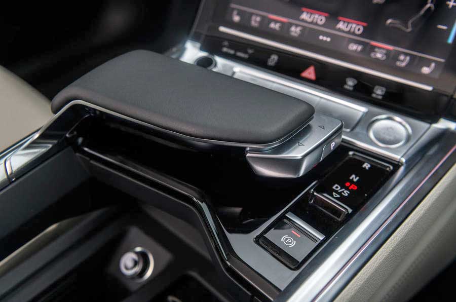Салон Audi e-tron – это, прежде всего, салон Audi, и уже затем e-tron. В том смысле, что внутри царит ощущение высокого качества материалов и сдержанный современный дизайн, характерный для актуальных премиум-кроссоверов марки. К примеру, центральная консоль построена вокруг двух дисплеев, подобно Audi Q8. Верхний (диагональ 10,1 дюйма) – отвечает за навигацию, аудиосистему, подключение телефона, бортовой компьютер. Нижний (диагональ 8,6 дюйма) – настройки климата и включение/отключение некоторых функций автомобиля. Одной из самых заметных перемен является общая верхняя часть передней панели: теперь она включает в себя не только ЖК-дисплей с «рисованными» приборами, но также дефлекторы вентиляции. В итоге отчасти создается ощущение высокого кокпита для водителя. Еще одна важная и заметная перемена – обустройство центральной консоли: углубление с полочками внизу, пару боковых ребер «на просвет», новый селектор АКПП. Конечно, традиционного «автомата» здесь нет (электромоторы работают в паре с одноступенчатыми редукторами для каждой из осей), да и традиционного селектора тоже нет. Теперь есть неподвижный хромировано-кожаный упор, где направления и режимы езды переключаются качающейся клавишей под большой палец: клик-клак – и выбрал нужное положение из привычных вариантов «R-N-D-S». К слову, именно в позиции «S» доступен режим «boost», где электромоторы развивают максимальную мощность в 300 кВт.