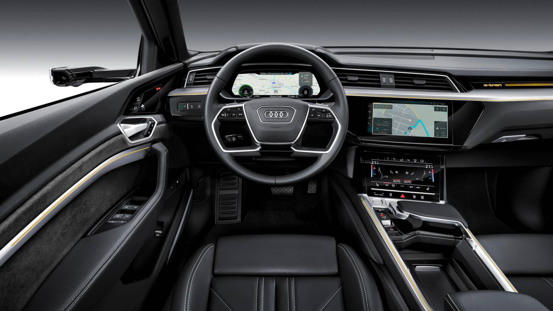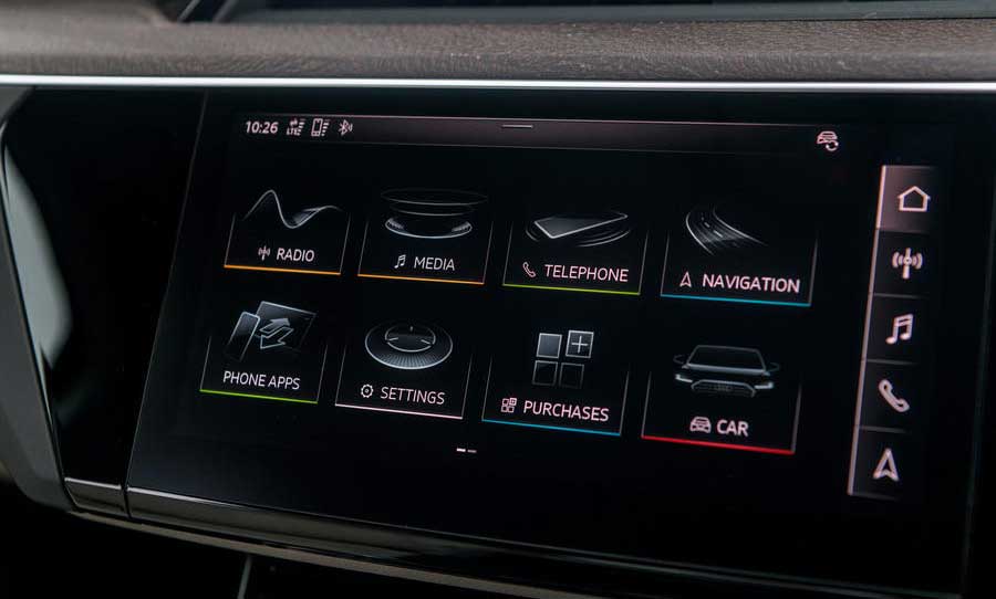 Audi e-tron quattro оснащен операционной системой MMI touch response, работающей на двух больших дисплеях: верхнем на 10,1 дюйма и нижнем на 8,6 дюйма, которые заменяют практически все обычные переключатели и органы управления.