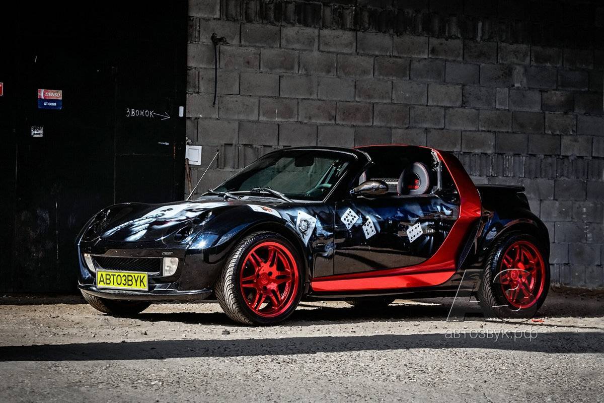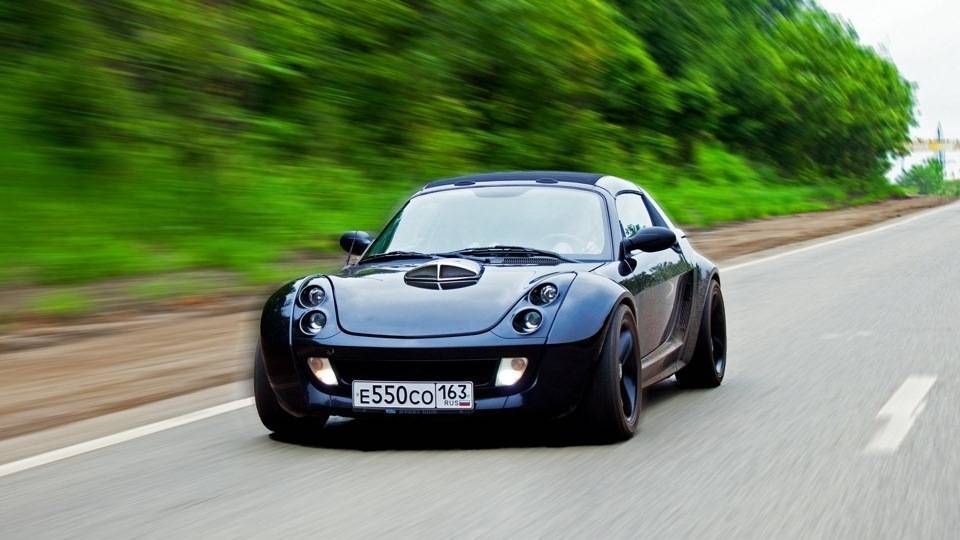 Цветовая гамма предложена исключительно яркая, чтобы еще больше подчеркнуть спортивную направленность модели. Передняя часть авто вытянута, оснащена внушительной оптикой. А вот задняя часть была уменьшена. Диски Smart Roadster 15-дюймовые алюминиевые, но в некоторых вариациях могут быть большего размера.