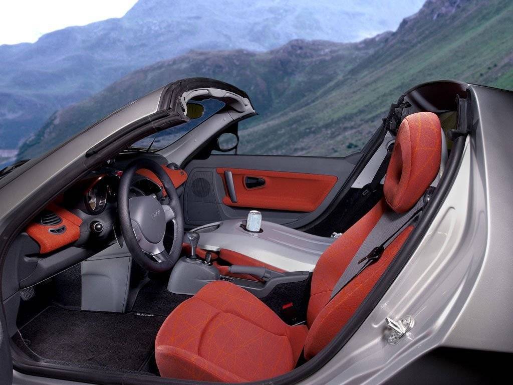 Приборная панель расположена с подходящим наклоном для водителя, что делает ее использование еще более удобной. Отдельного внимания заслуживают двери. Они открываются практически под прямым углом, что делает комфортной посадку водителя и пассажира в автомобиль Smart Roadster.