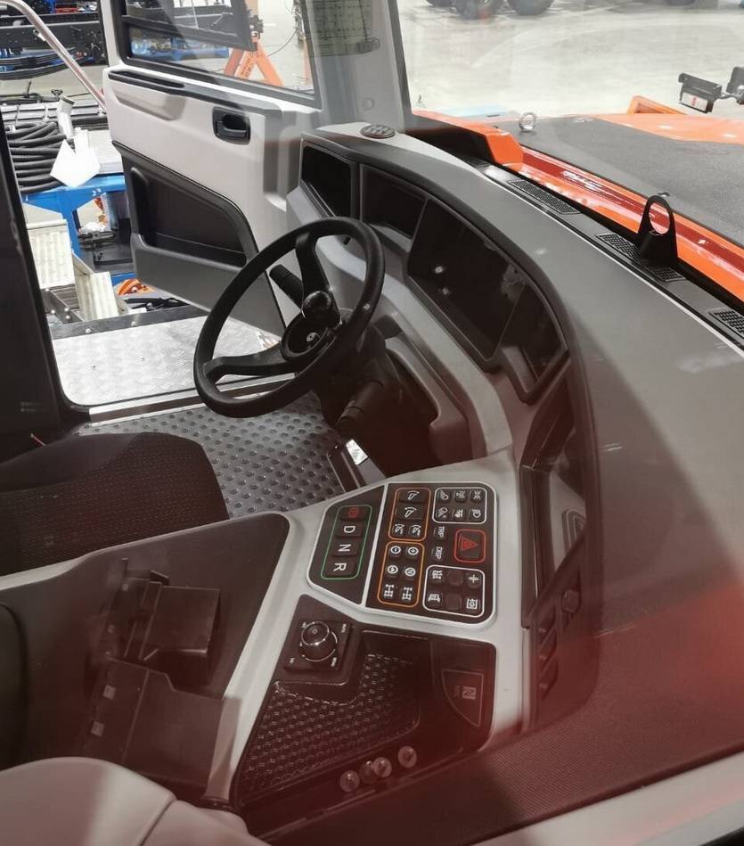 В самосвале применяется система автономного вождения ADAS пятого уровня, которая обеспечивает движение в карьере без участие водителя, но водительское место сохранено полнофункциональным.
