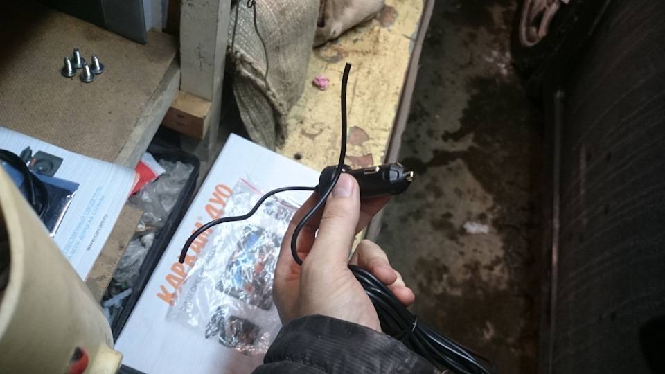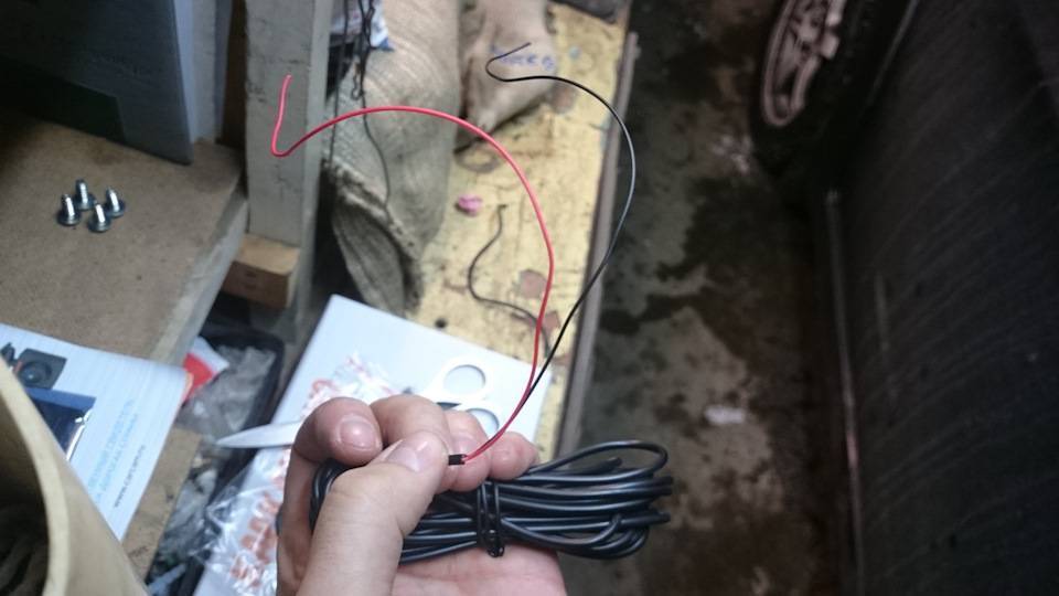 Черный провод прикручиваем в любом удобном месте к кузову автомобиля, обязательно через шайбу, чтобы его не порвать.