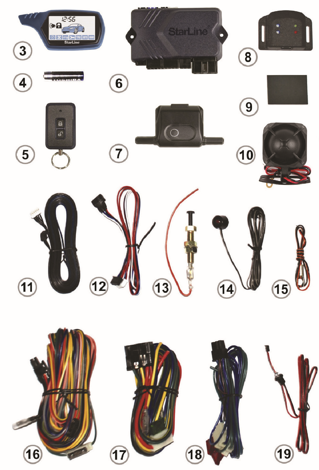 Обзор элементов, входящих в комплект поставки автосигнализации Старлайн А62 для авто:
