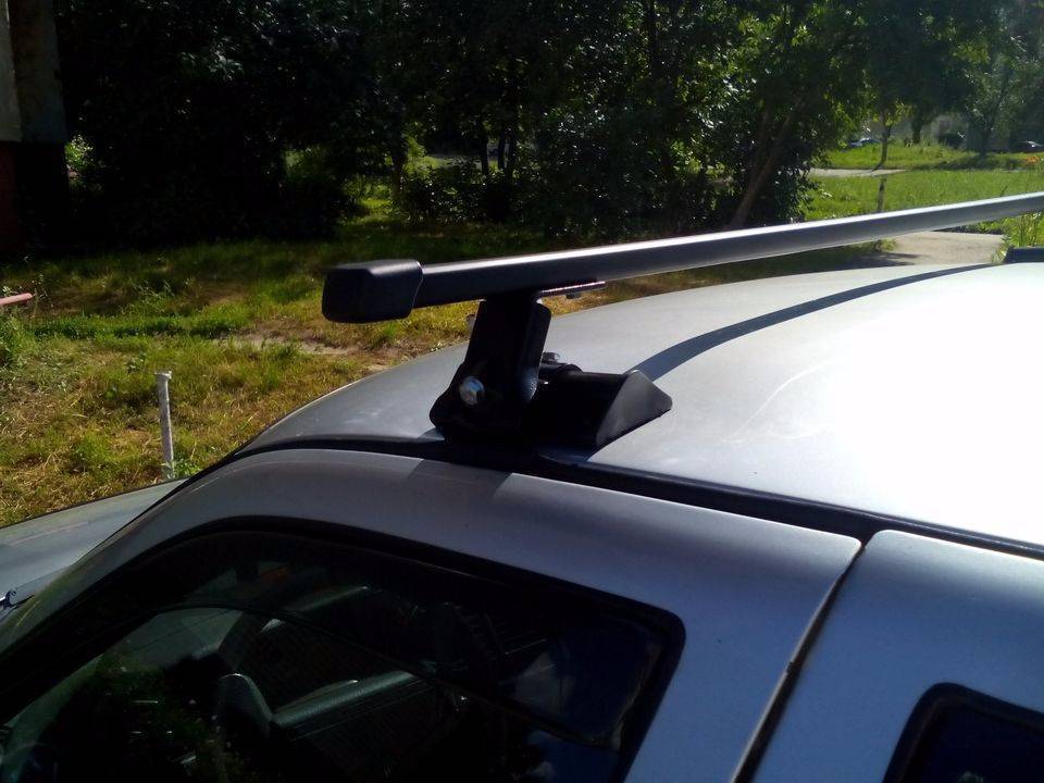 Простейший вариант крепления груза на крышу отечественных автомобилей классической компоновки. Универсальный крепеж с быстросъемными винтовыми зажимами за водосточный желоб не требует специального инструмента, установка и снятие конструкции занимают несколько минут.