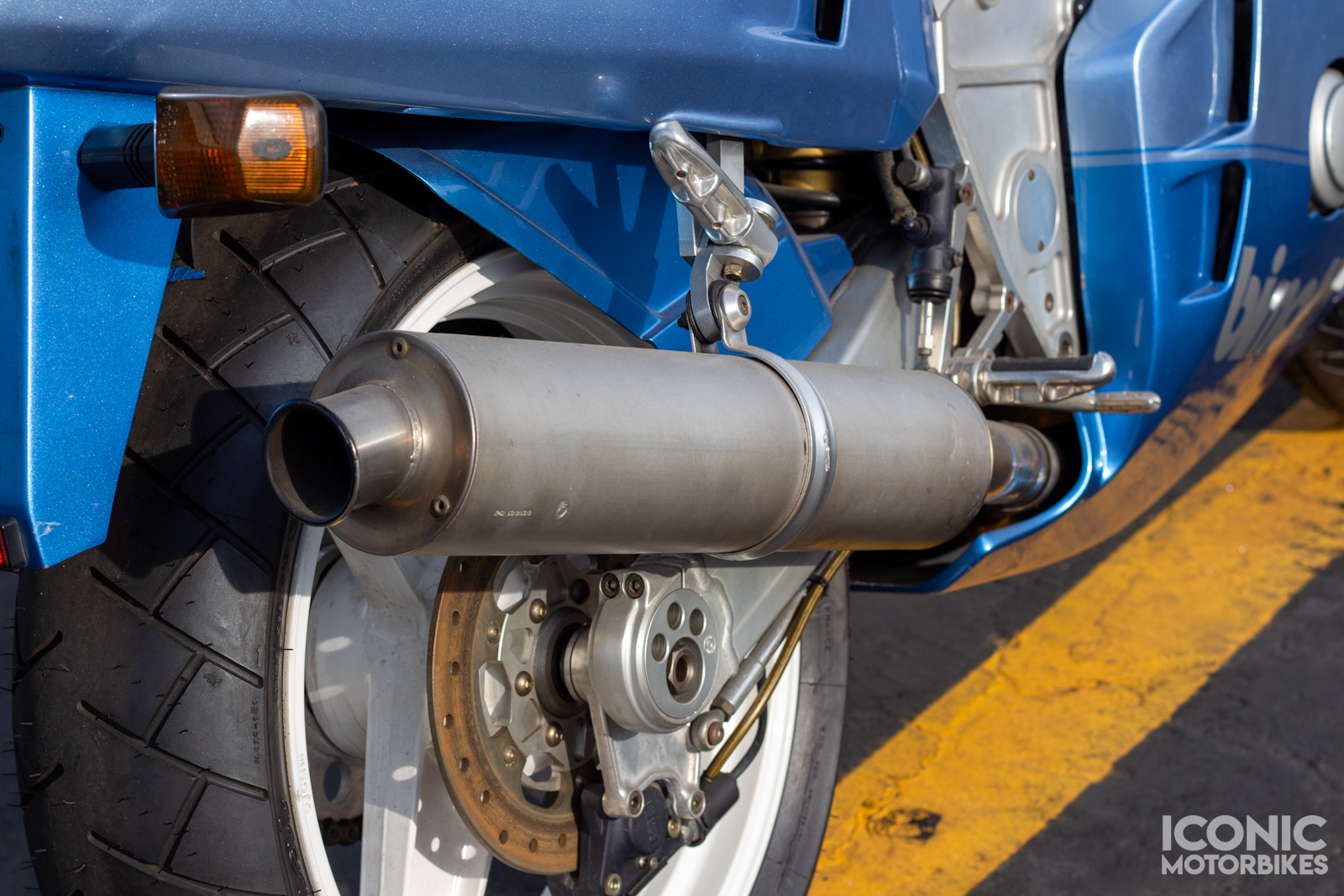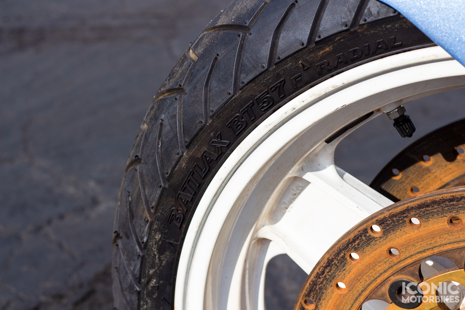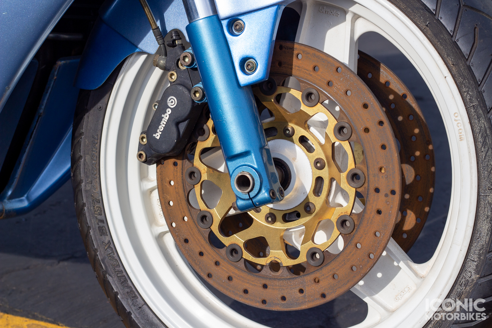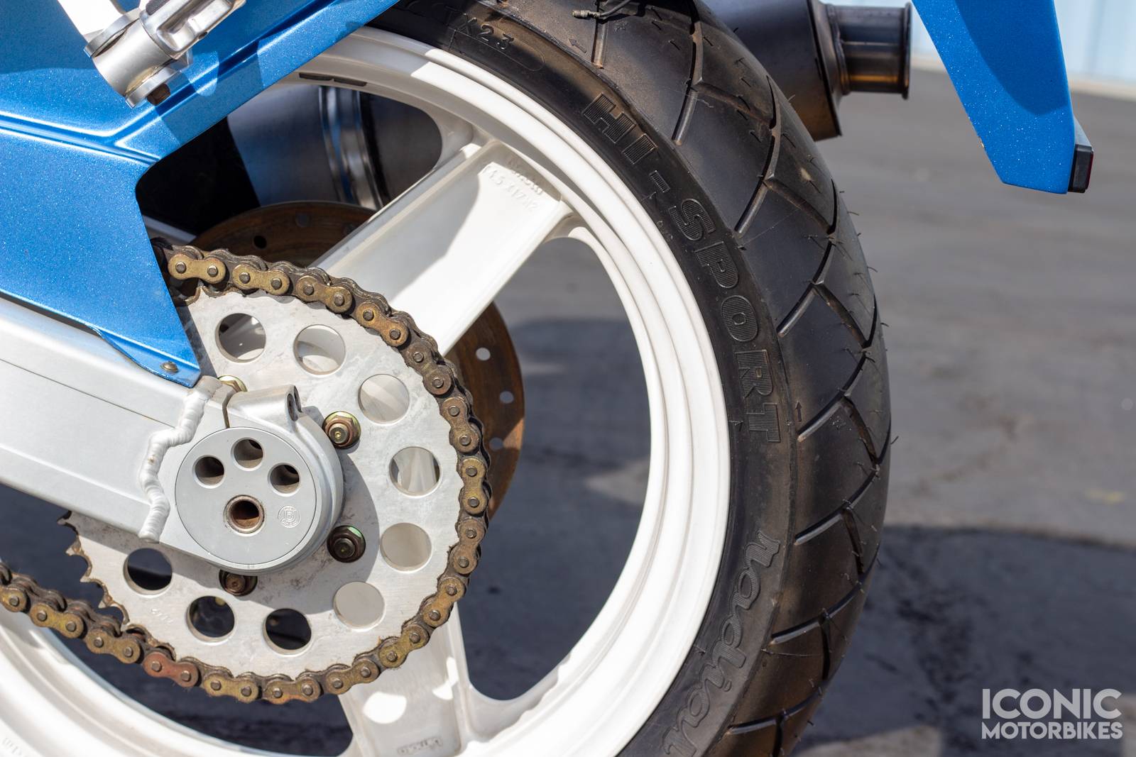 It is riding on Michelin Hi-Sport and Bridgestone Battlax BT57F tires that have aged out.