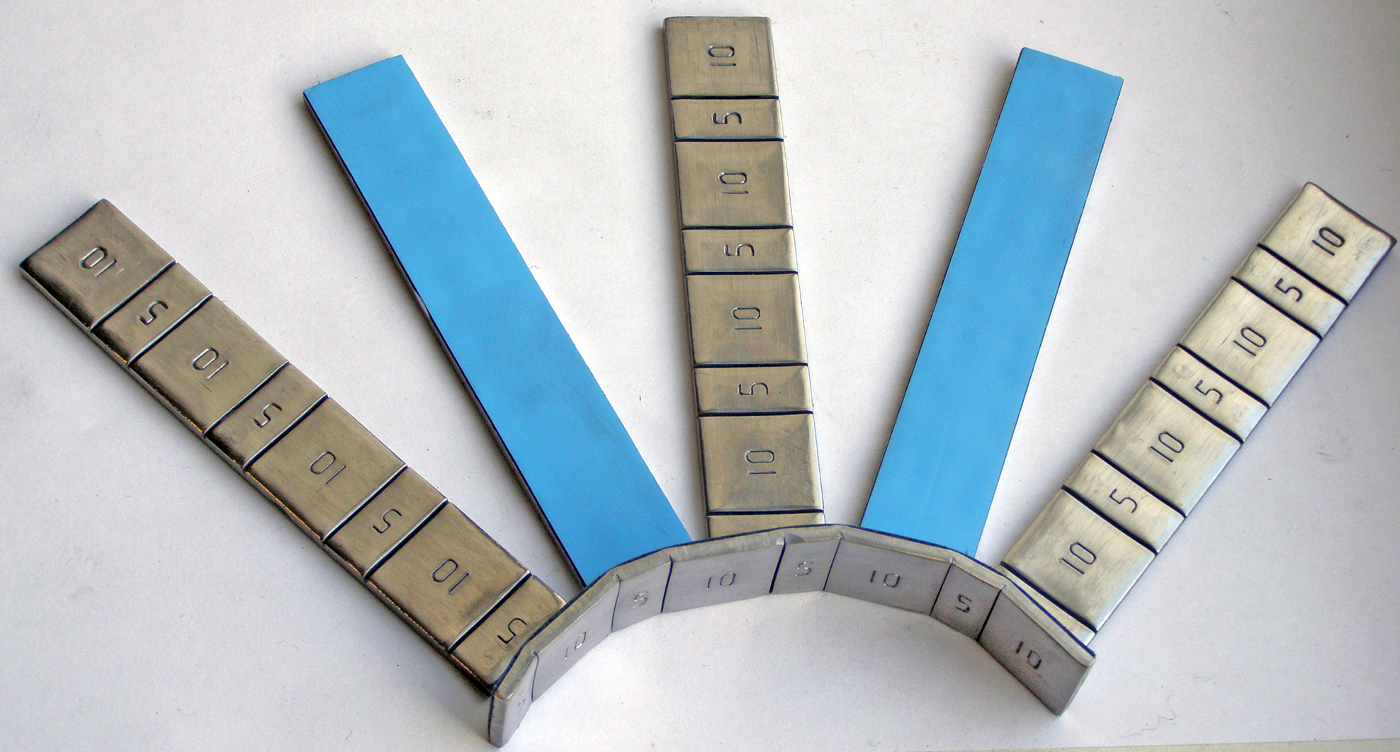 Данный тип имеет конструкцию подобную кронштейна, что неплохо подходит для литых или штампованных дисков. В процессе балансировки такие грузики зачастую крепятся на бортики диска.
