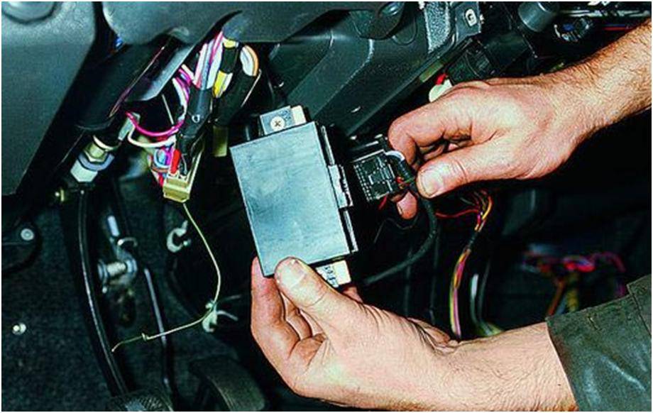 Так же, как и в установке механизма центрального замка, сначала крепим блок управления. Это должно быть труднодоступное, незаметное для глаз место. От него тянем провода к габаритным огням, поворотникам, стопам и контроллеру состояния двигателя. И также под капот для подключения сирены.