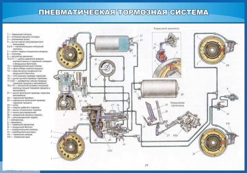 Статистика утверждает, что в течение года водитель нажимает на тормоза 75 тысяч раз, а при вождении в черте города этот показатель возрастает вдвое. На все детали тормозной системы приходится огромная нагрузка, поэтому элементы становятся уязвимыми и могут отказать в любой момент. Схема пневмосистемы полуприцепа надежнее гидравлических тормозов, но периодически проходить тщательное техническое обслуживание, а особенно перед дальним рейсом, нужно обязательно.