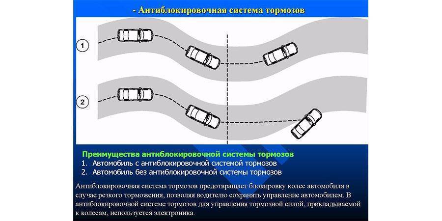 Чтобы облегчить вождение автомобиля в сложных погодных условиях, была разработана антиблокировочная система тормозов.