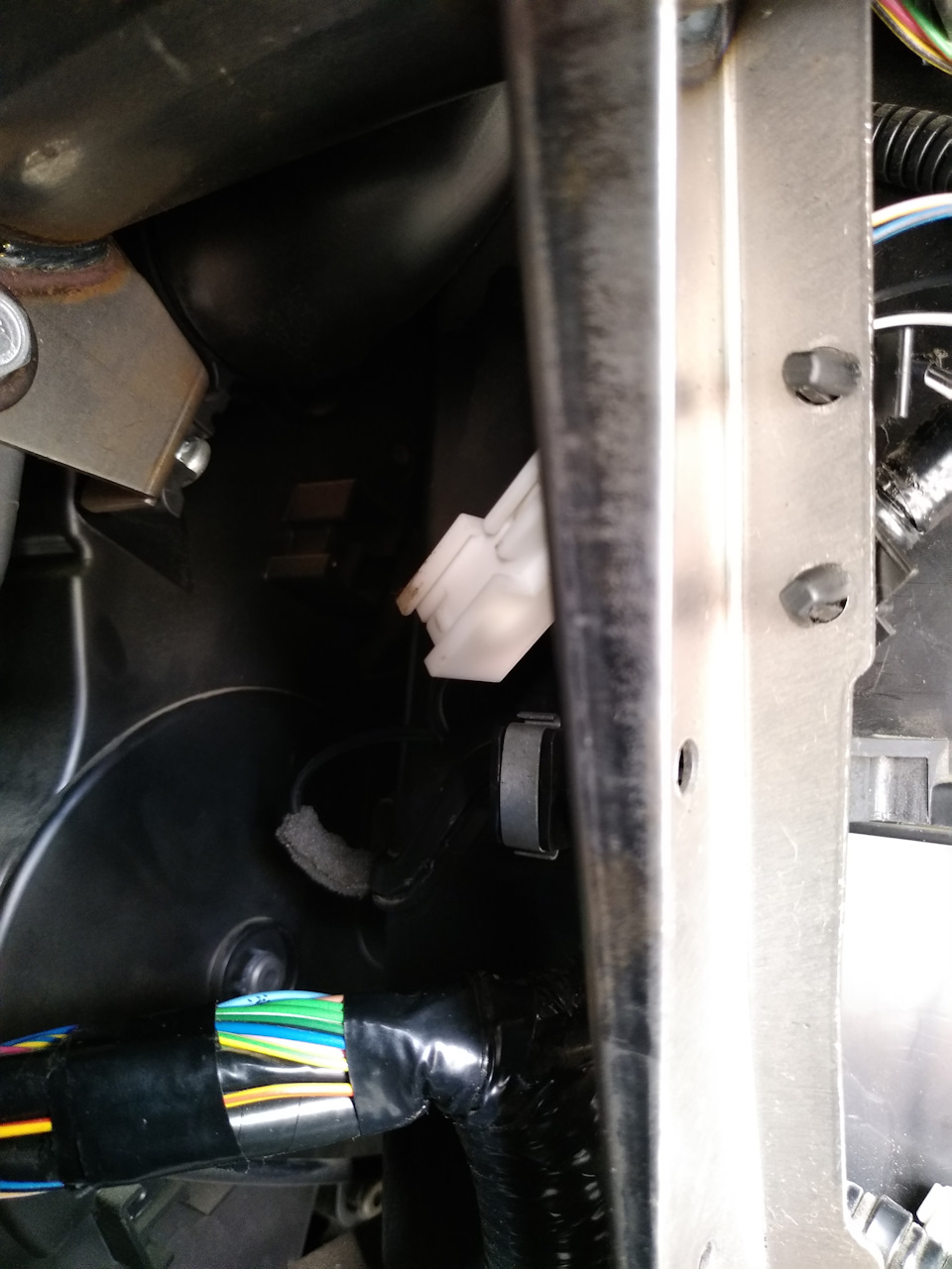 7. Не жалея сил, выдерните датчик за провод из корпуса. Для удобства можно просунуть руку в «окно климата». Должен выйти такой провод — это и есть ДТИ.