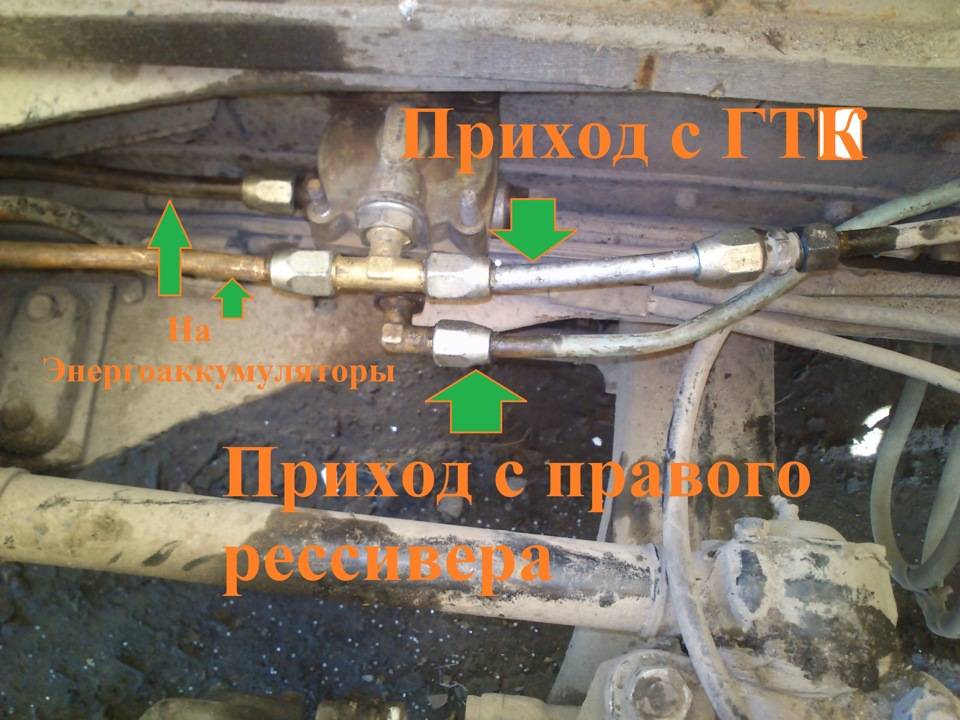 Когда собрали машину сразу проявили проблемы с тормоза, вроде всё новое а тормозил очень плохо и вяла, правая сторона совсем не тормозила, Я зашел на один форум и мне сказали что нужно ставить дополнительно ускорительный клапан ручника. К верхнему штуцеру подсоединяется трубка, которая идет от ГТК к задним тормозам, к одному из нижних подсоединяется трубка от рессивера, а другого нижнего идет трубка на тормозные камеры.