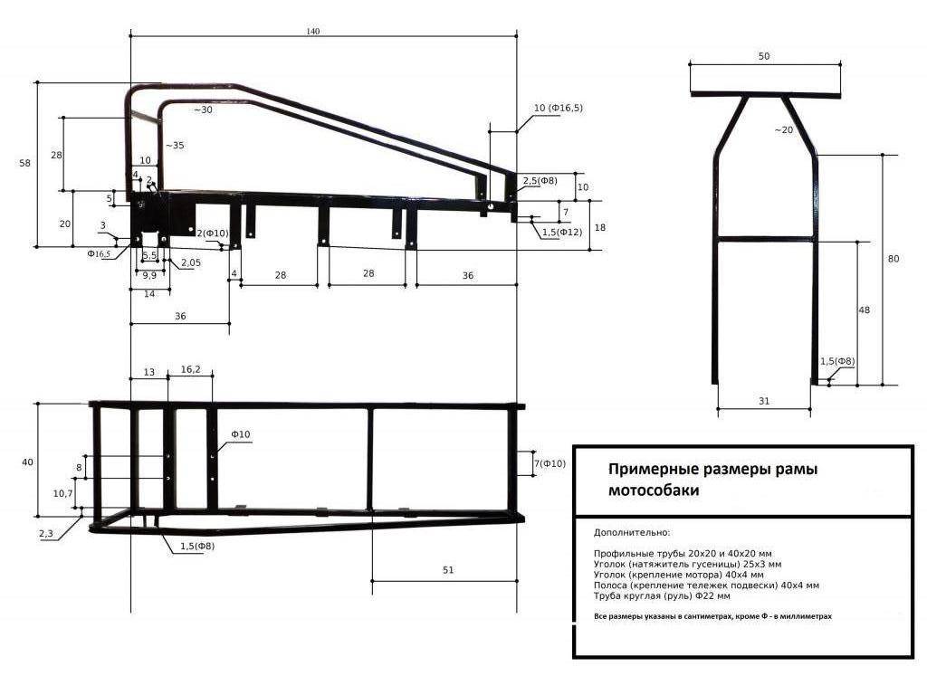 Чертеж простой рамы для самодельного снегохода