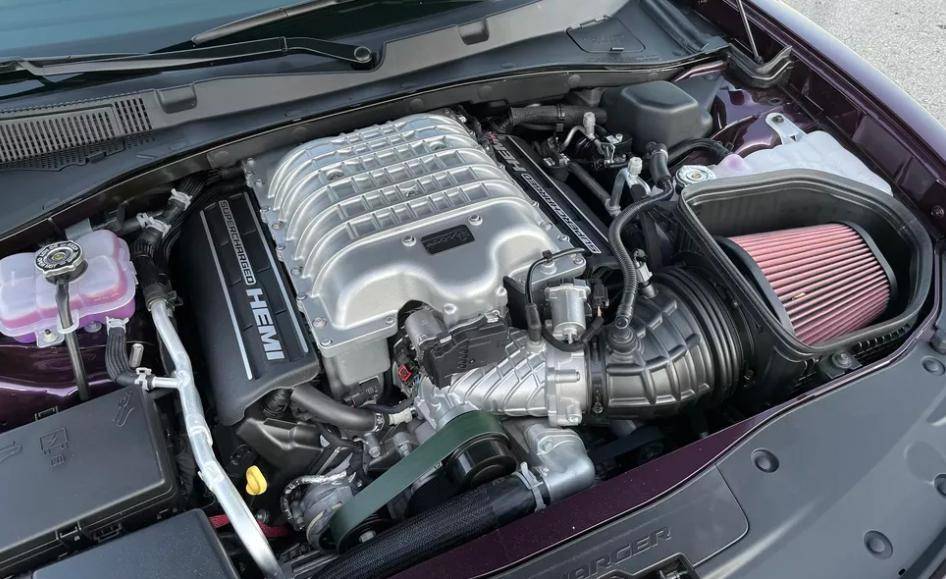 6,2-литровый двигатель Hellcat V8 с наддувом от Dodge – звезда модели, расположенный под переработанным капотом с увеличенным воздухозаборником и двумя отверстиями для отвода тепла. Обновление Redeye поставляется с функцией Dodge Power Reserve, которая создает предварительное давление во впускном коллекторе для лучшего отклика дроссельной заслонки, а также с Power Chiller, который использует хладагент для охлаждения всасываемого воздуха. Это большой двигатель большой машины, развивающий большую мощность, и в действии это абсолютный зверь.