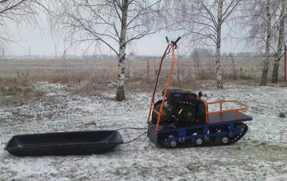 Основной плюс мотособак с задним приводом – маневренность и управляемость за счет того, что центр тяжести смещен ближе к месту сцепки. Они отлично идут груженые. Однако пустой мотобуксировщик постоянно встает на дыбы, на подъеме опрокидывается, а на снегу просто закапывается.
