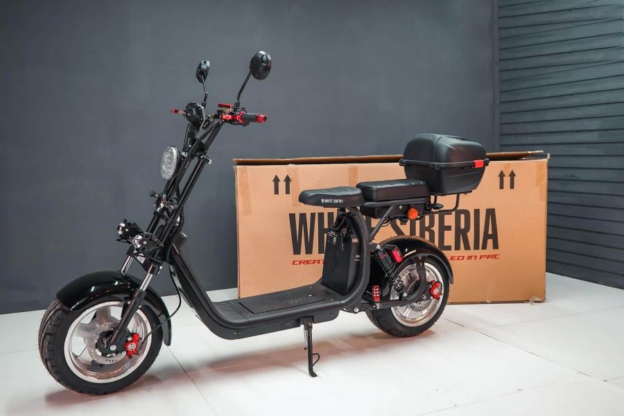 - Электросамокат Citycoco (1500 W, скорость 45 км/ч, аккумулятор литий-ионный 2х60V/20Ah). Конструкция цельнокусковая из нержавеющей стали. Батарея двойная.