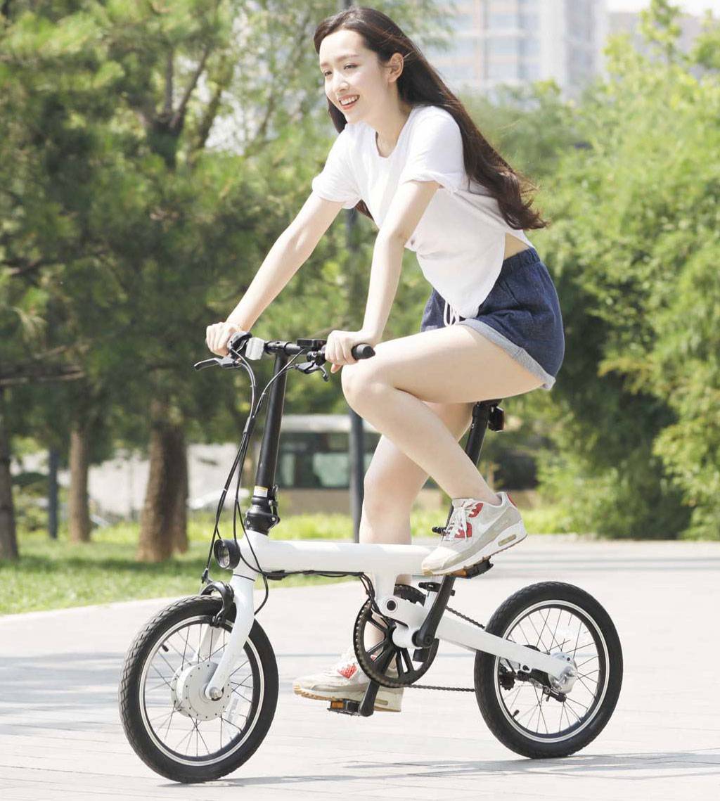 Выпускник 2017 года Mijia QiCycle от суббренда Xiaomi получил оригинальный дизайн, шестнадцатидюймовые колеса и бесколлекторный двигатель мощностью 250 Вт. Складная конструкция велосипеда и относительно небольшой вес – 14.5 кг делают его удобным компаньоном для городских поездок. Протекторы покрышек с низким рельефом, предназначены для дорог с асфальтовым и плотным грунтовым покрытием.