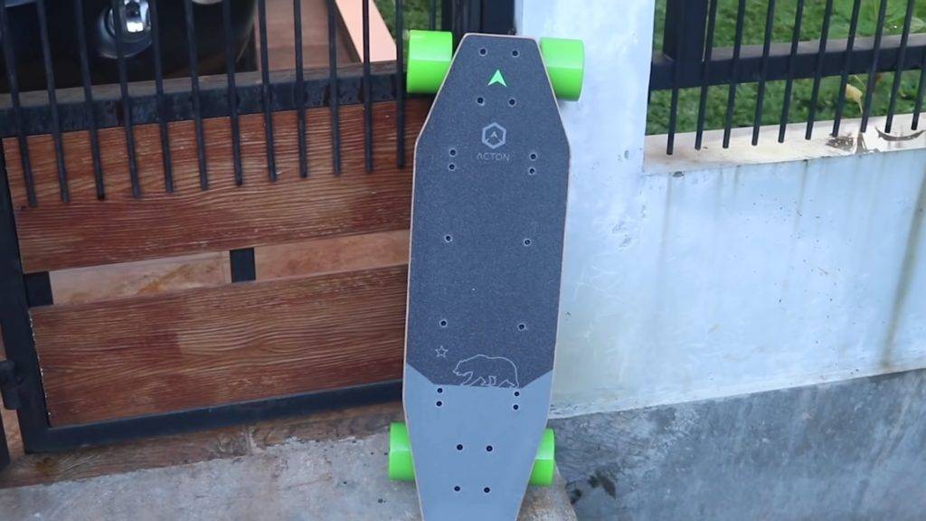 Дека из канадского клена в 7-м слоев, райдер до 100 кг чувствует себя комфортно. Суммарная мощность 600 Вт (2 мотора). Аккумулятор спрятан под декой, через амортизирующую прокладку, так что прыгать можно свободно.