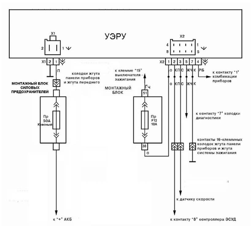 - обрыв, подгорание или замыкание проводов, питающих ЭУР (они красного и черного цветов, имеют большее сечение, чем остальные, а также входят в отдельный разъем);
