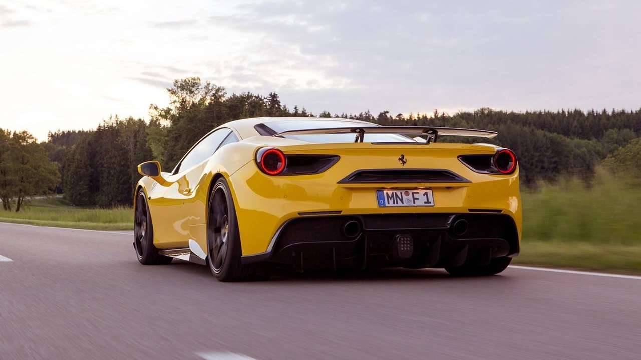 В кормовой части суперкара у круглых задних фонарей расположилась пара крупных воздуховодов, обеспечивающих охлаждение моторного отсека, тройная выхлопная труба, размещённая по центу и очень напоминающая легендарную F40, а также пара стоп-сигналов, укрывшаяся под бампером оригинальной конфигурации.