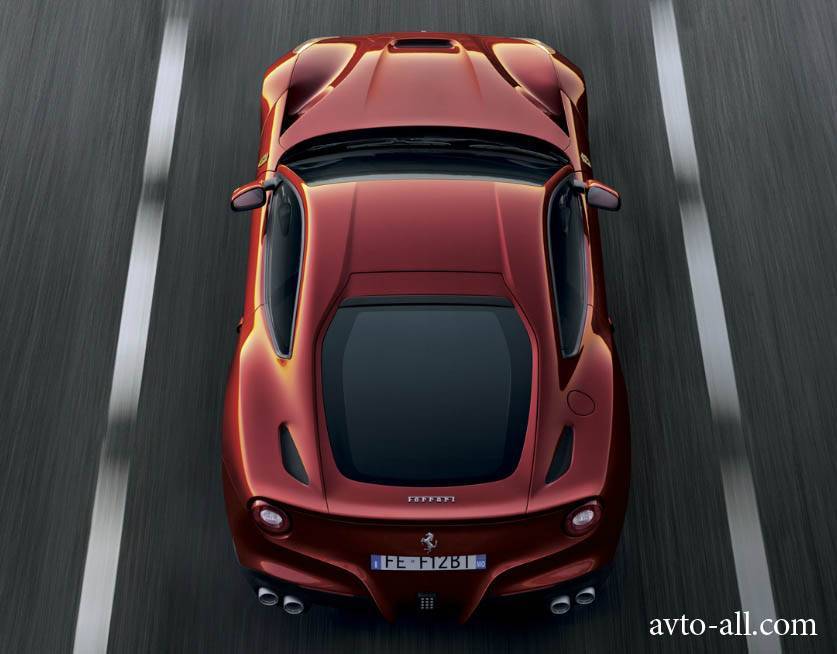 Длина F12 равна 4 618 мм, ширина составляет 1 942 мм, высота равна 1 273 мм. Поэтому, получается, что новая модель короче на 47 мм, на 20 мм уже и ниже на 63 мм чем 599 GTB Fiorano.