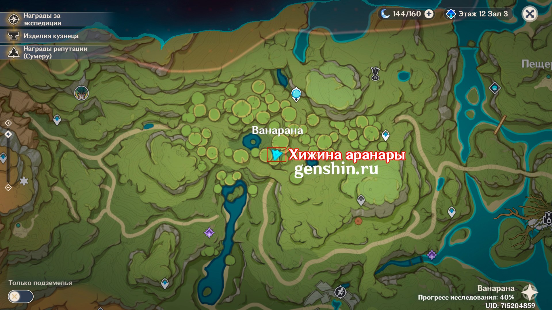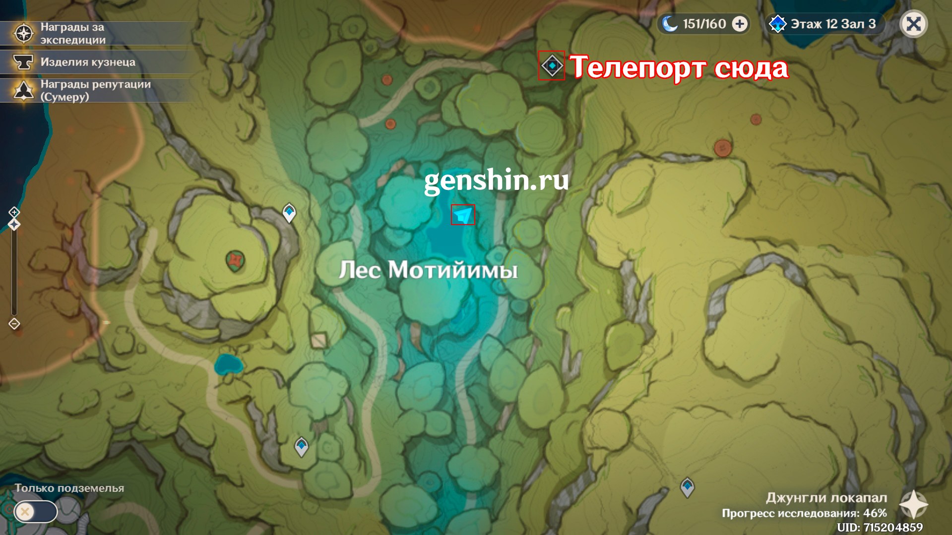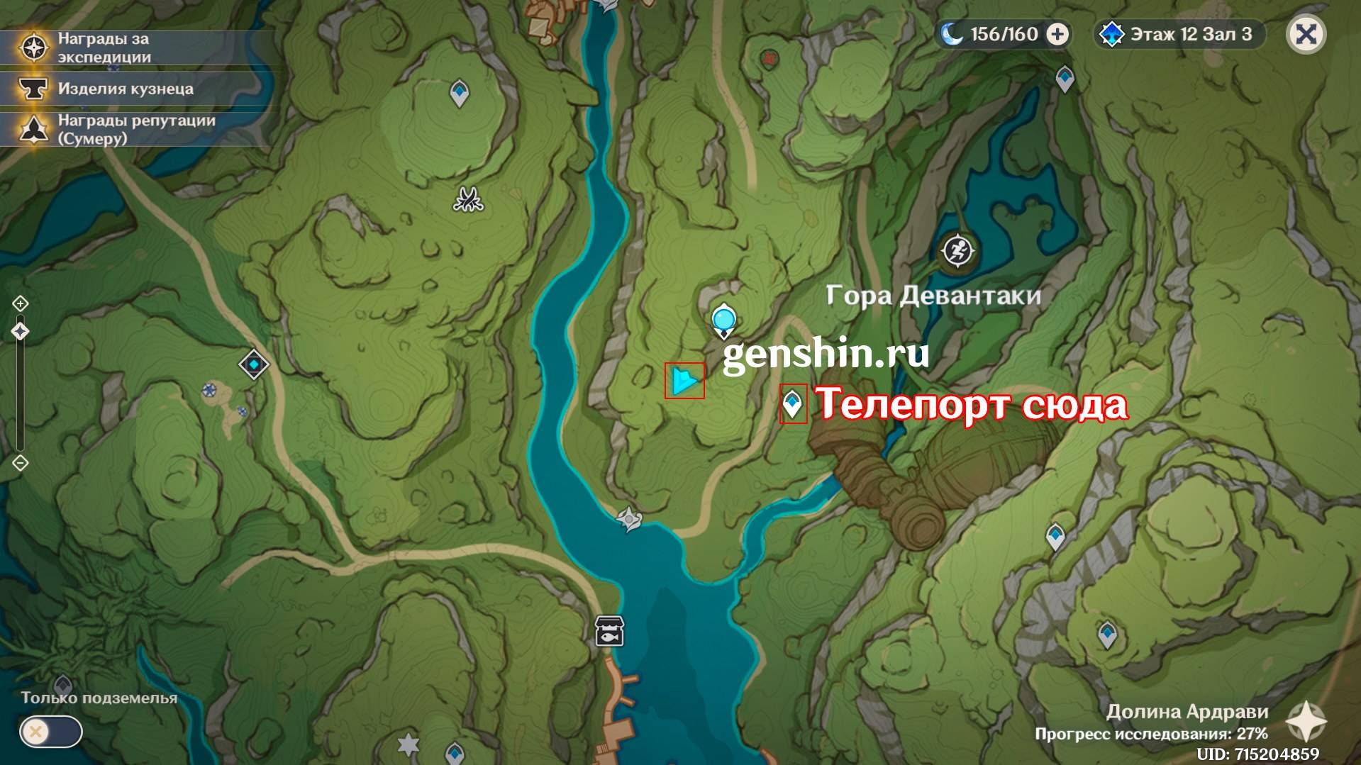 Отправляемся к месту на снимке и рядом откапываем сундук. Телепортируемся к Статуе Архонта в Ванаране: