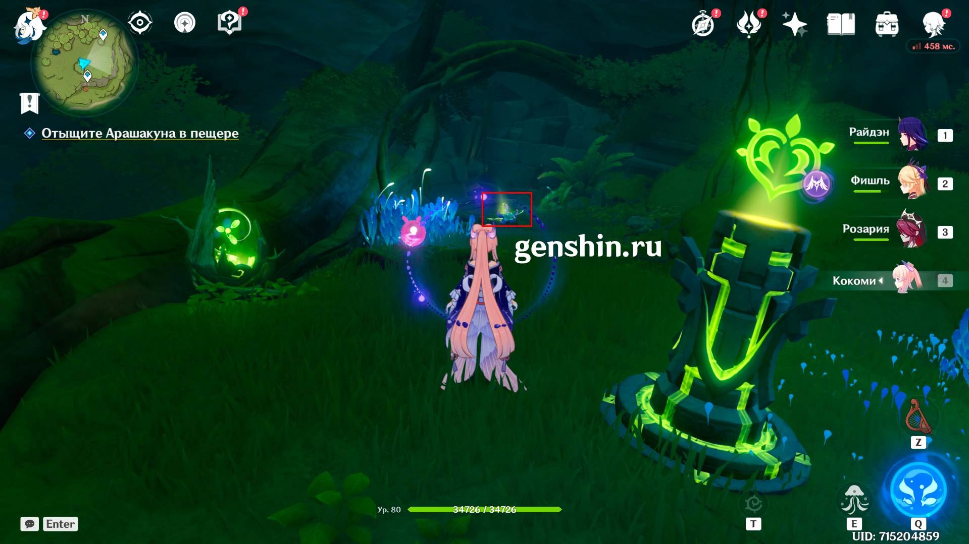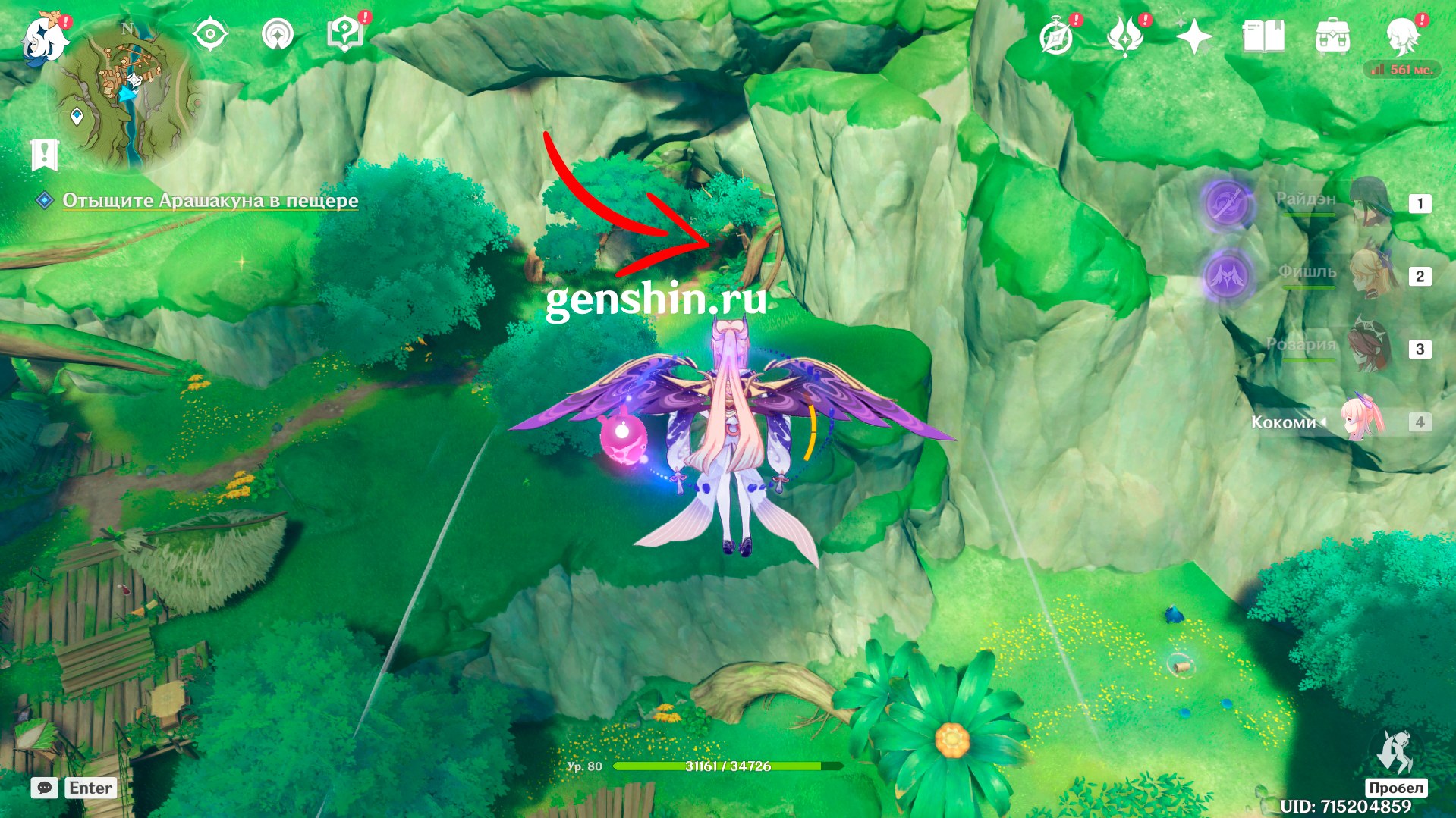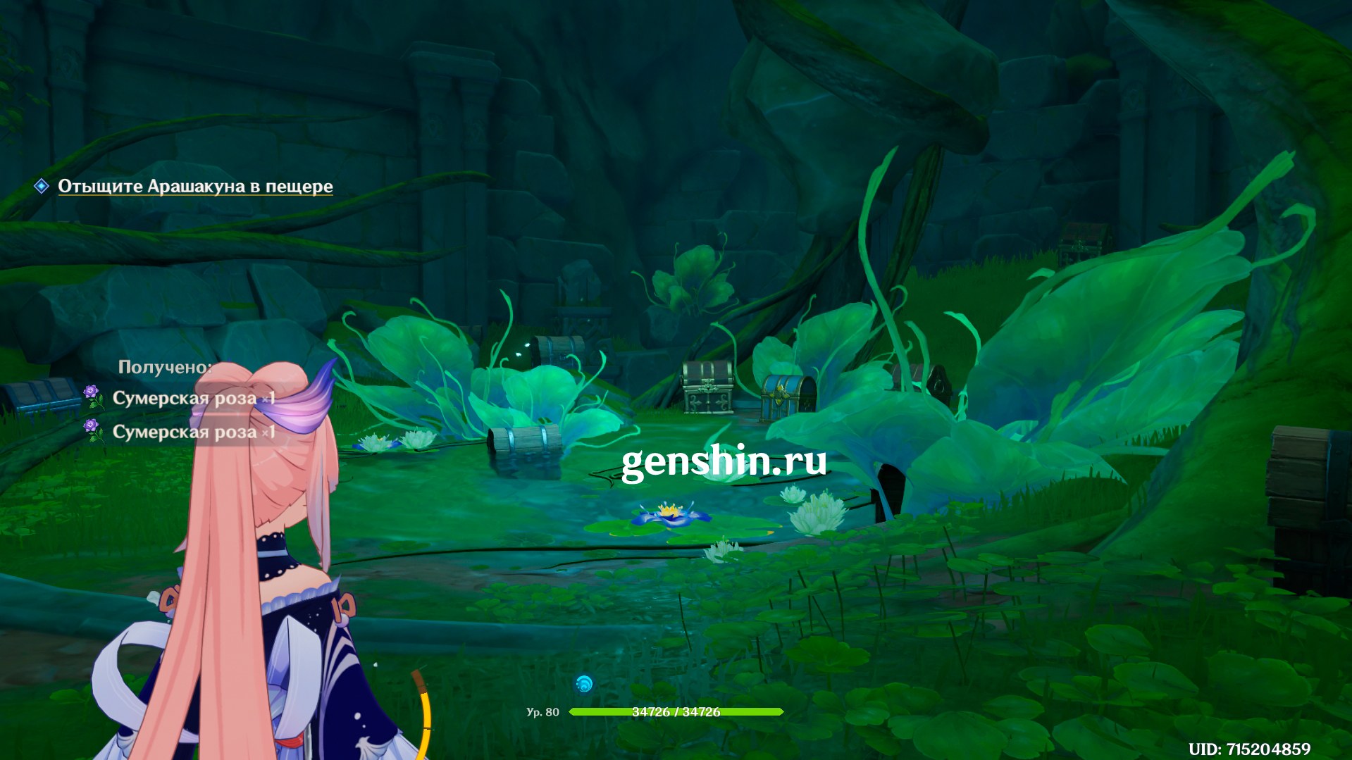 Там вам необходимо телепортироваться к Статуе Архонтов, а уже потом искать пещеру, в которую надо войти. Эта пещера приведет вас к домику. Спускайтесь в самый низ. Там будет сундук: