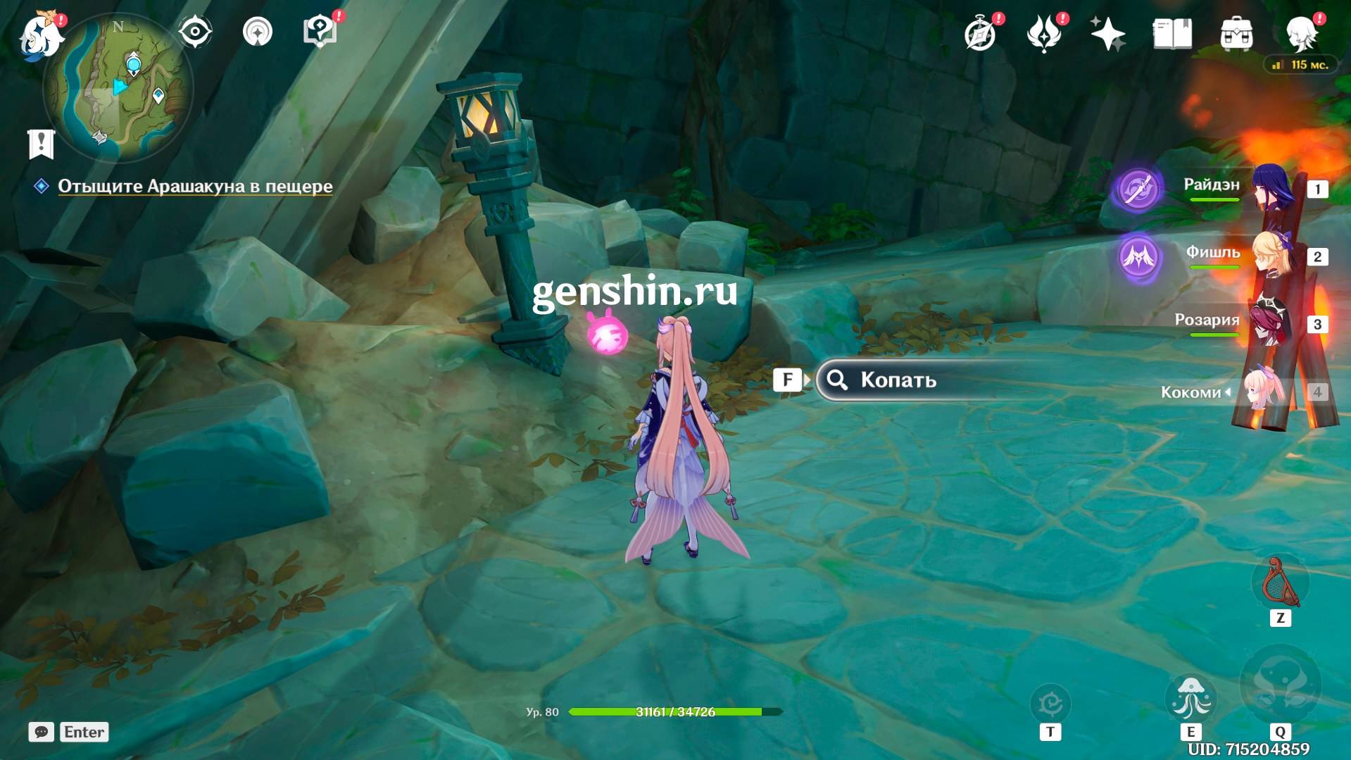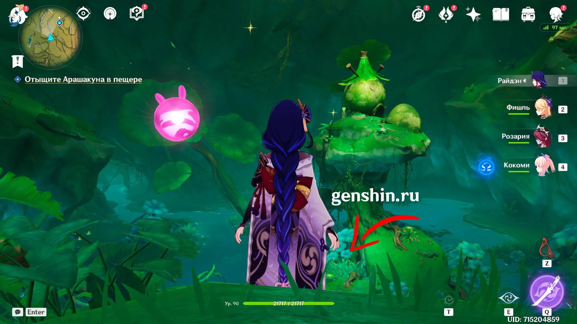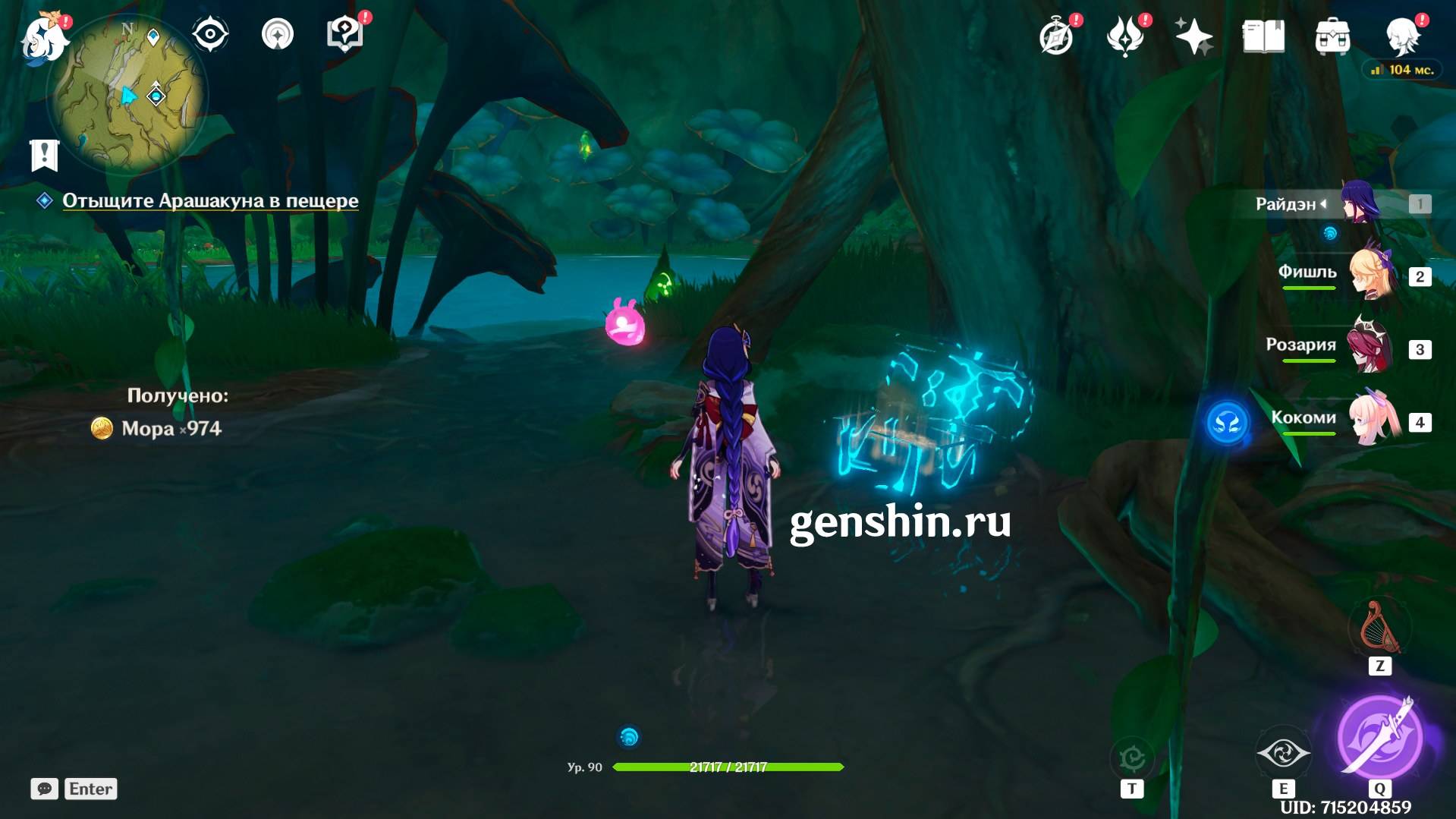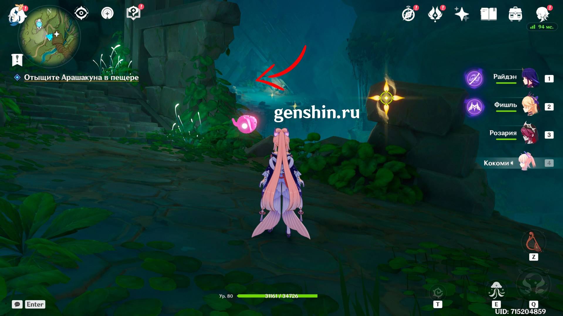 Там вам необходимо телепортироваться к Статуе Архонтов, а уже потом искать пещеру, в которую надо войти. Эта пещера приведет вас к домику. Спускайтесь в самый низ. Там будет сундук:
