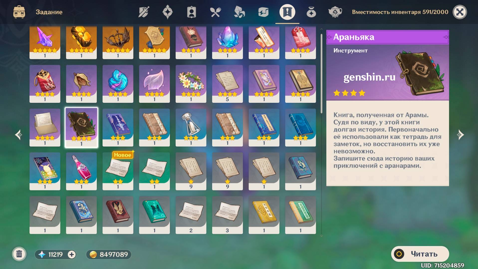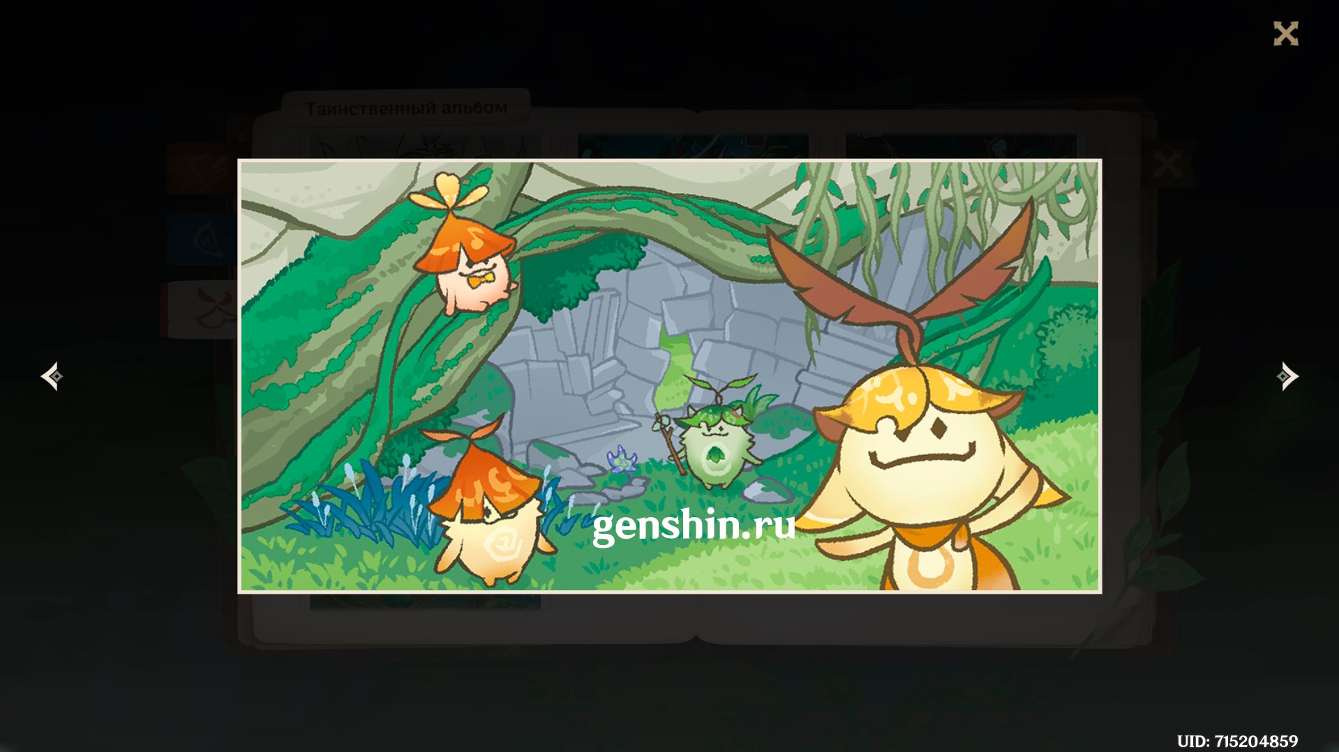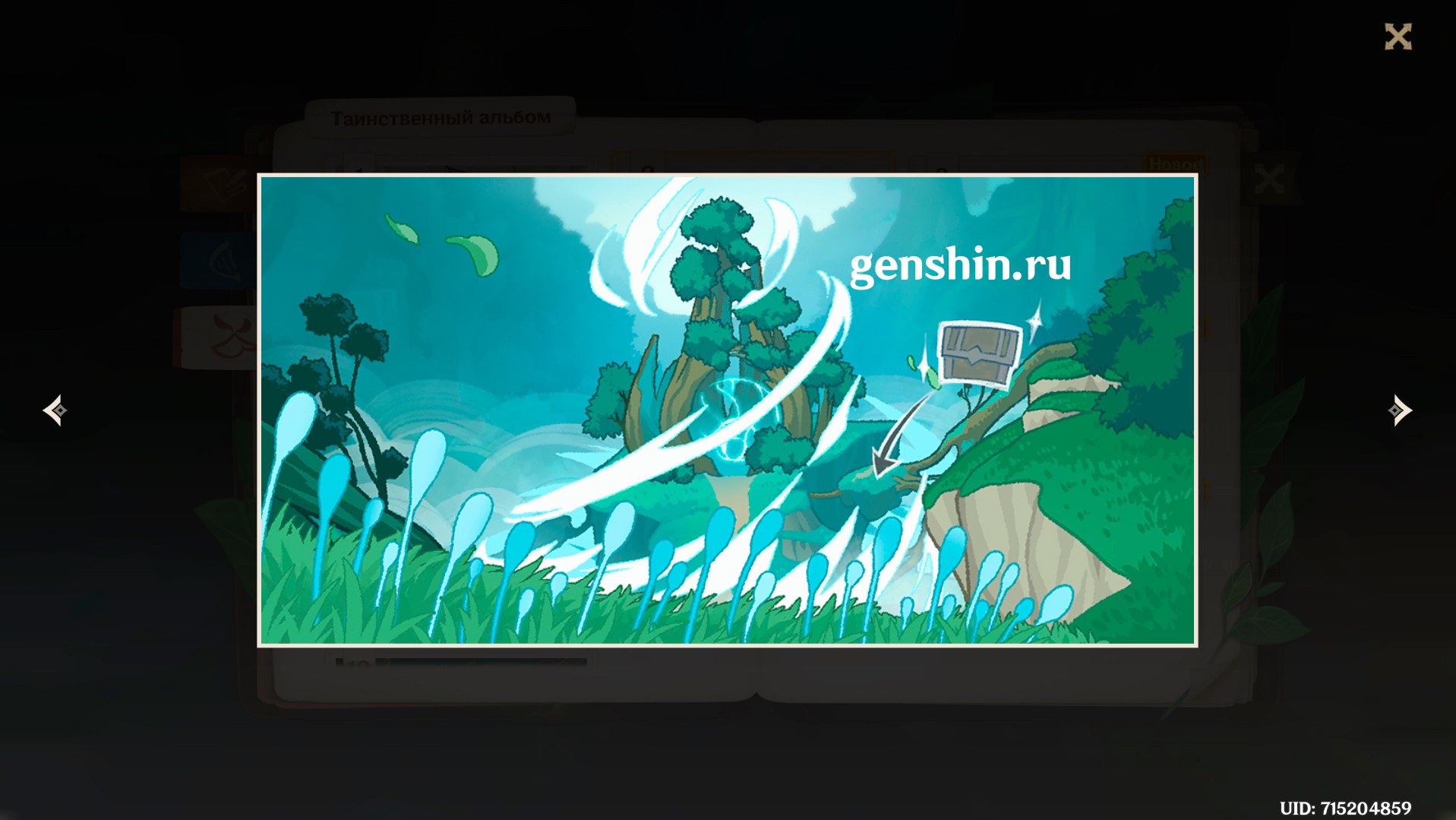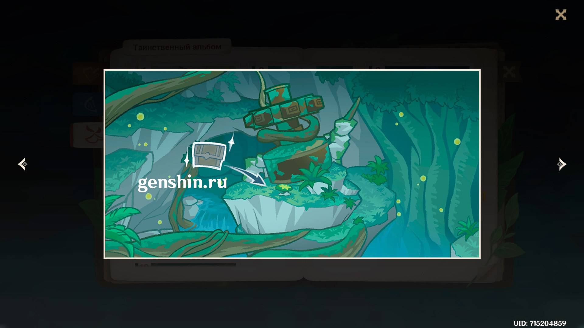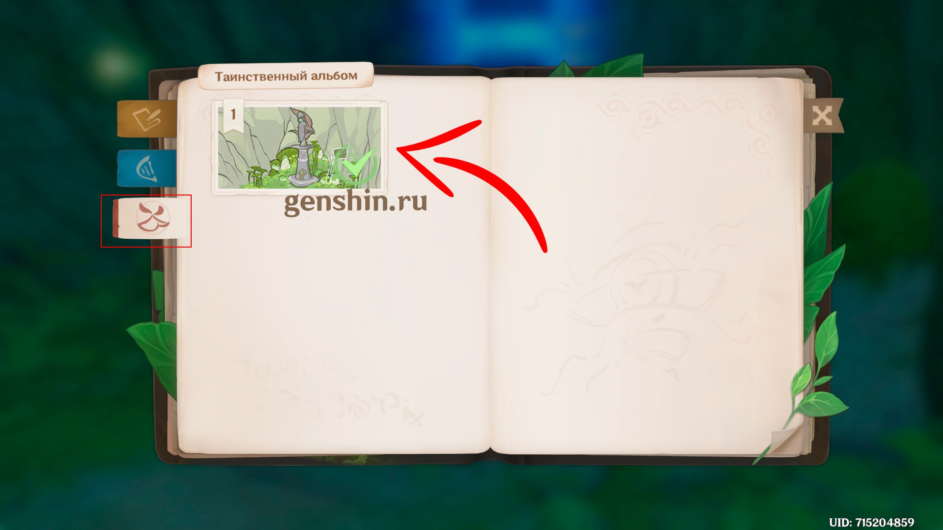начинаем прохождение «Статичные пейзажи 1» в Genshin Impact. Открываем Араньяку в нашем инвентаре, а далее — третью вкладку «Таинственный альбом»: