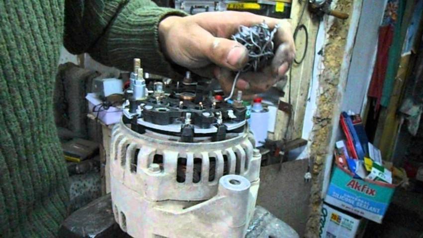 Проверка и возможный ремонт диодных элементов. Для этого генератор снимается, производится замена повреждённых диодов с помощью перепайки.