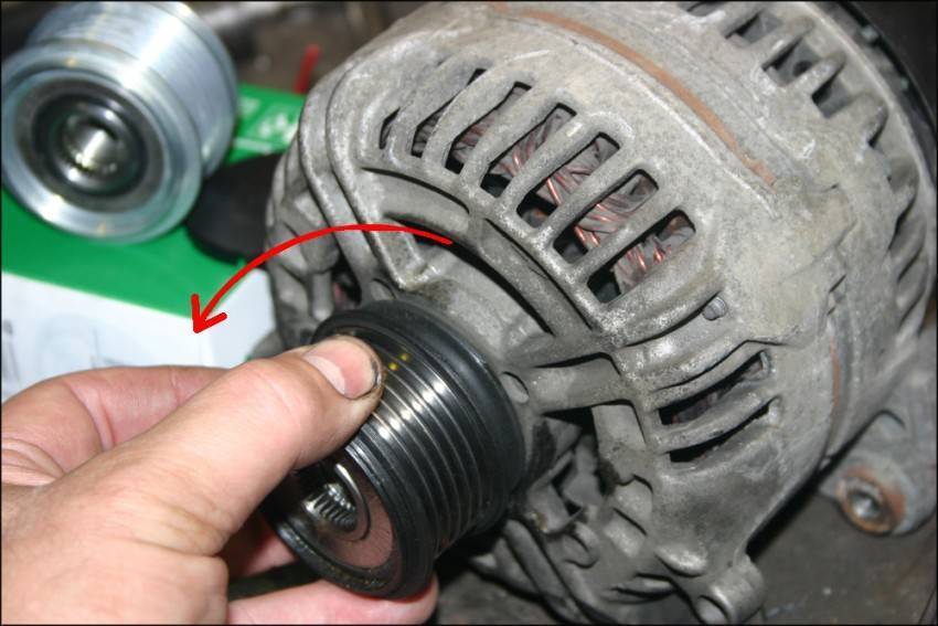 Шкив посредством приводного ремня, передает крутящий момент на генератор от коленчатого вала. Размер шкива определяет передаточное число, чем больше его диаметр — тем меньше необходимо энергии на вращение генератора. Современные автомобили переходят на обгонную муфту, смысл которой сглаживать колебания вращения шкива, сохраняя натяжение и целостность ремня.