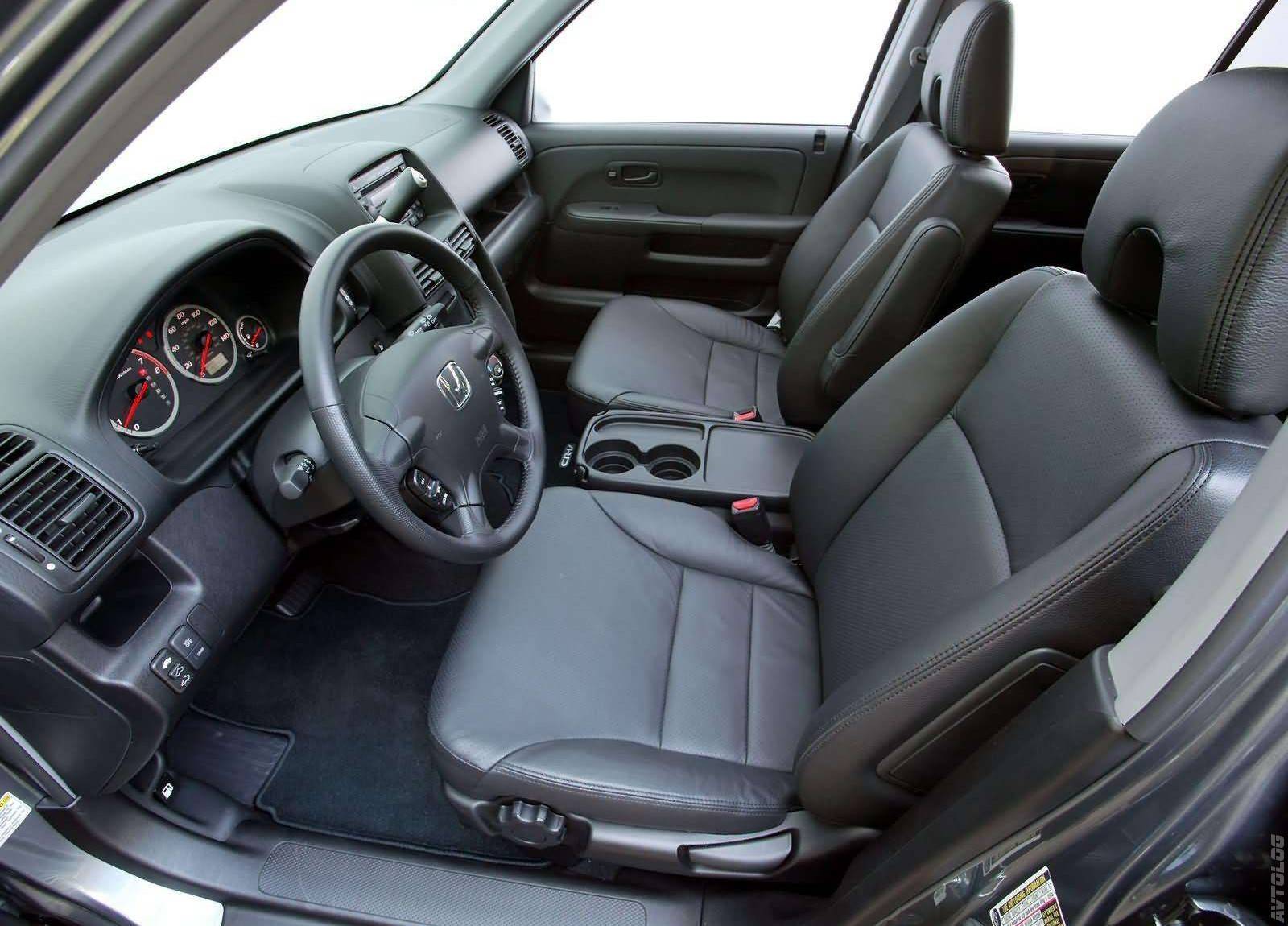 Передние сиденья, покрытые устойчивым к износу материалом, имеют хорошую форму и удобный профиль. Складывающееся заднее сиденье, которое делает интерьер CR-V действительно функциональным, может принимать двух пассажиров комфортно и троих в течение коротких периодов времени. Для каждого пассажира предусмотрен ремень безопасности. Если в центре нет никого, центральная консоль раскладывается с двумя большими подстаканниками.
