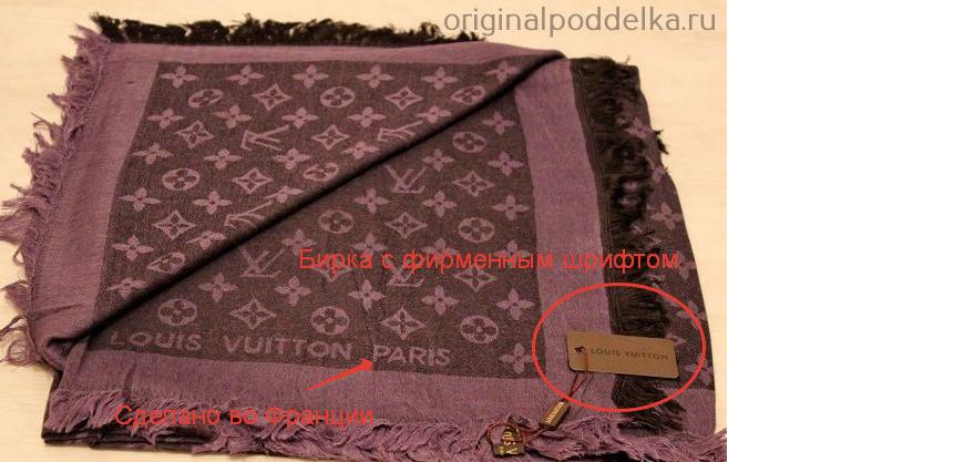 Посмотрите на вшитый ярлычок с составом. На оригинале его пришивают нитками по углам. На нём указывается серийный номер палантина.