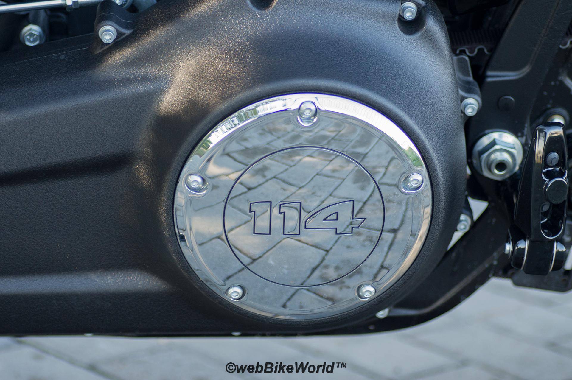 The 114 engine in this bike isn’t exactly the same as the one in the big touring models in Harley’s lineup because it’s not liquid cooled as they are. It does come with a small cooler core for engine oil to pump through and is also cooled by airflow (which should help a lot when this beast is running in 100 degree weather).