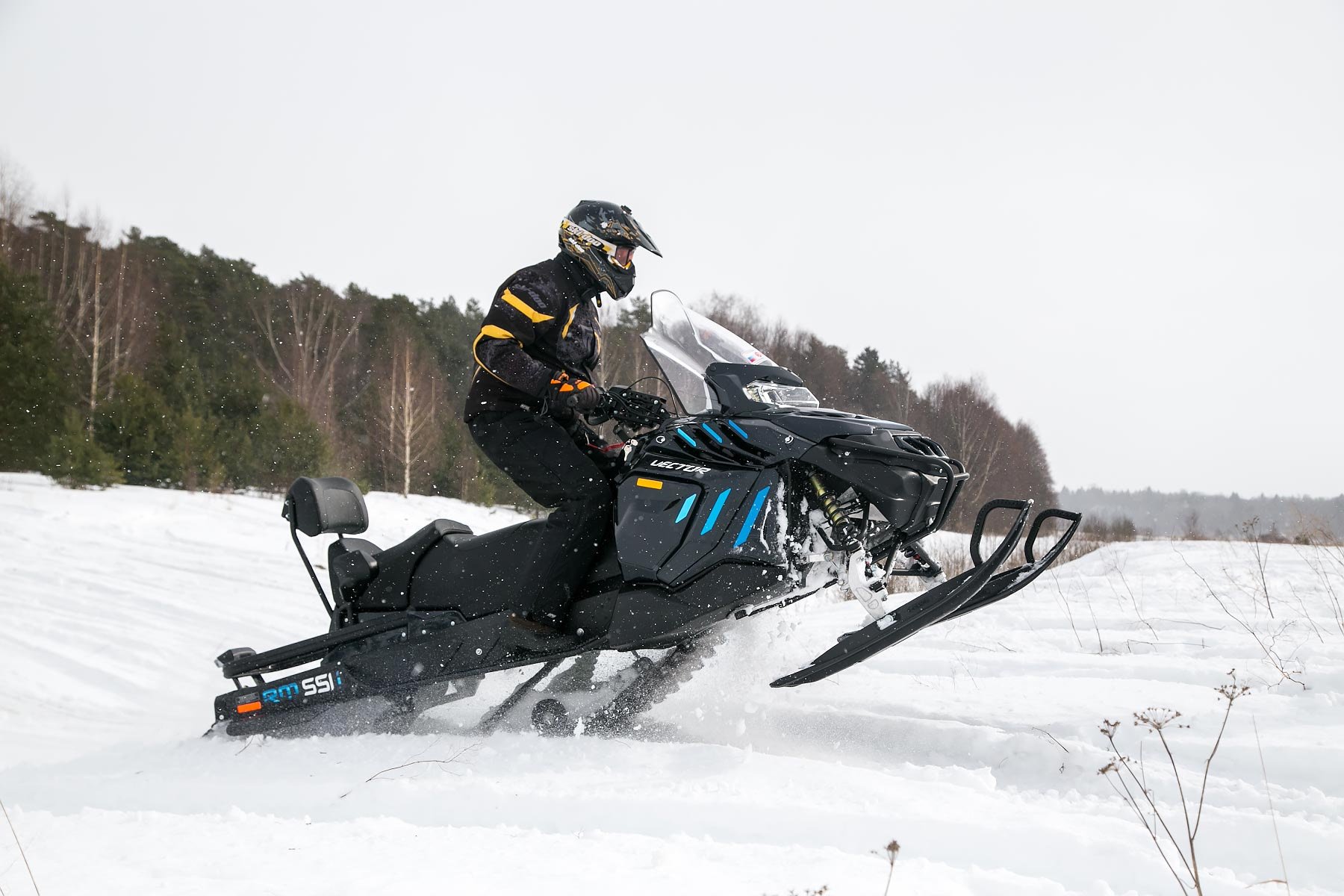 RM VECTOR 551 – это еще один новый снегоход Русской механики, который вас порадует во время выездов на зимнюю рыбалку. С ним вы сможете попасть в любые недоступные места и перевозить грузы с трофеями. Производитель до конца держал интригу, не сообщая в СМИ о новом модельном ряде, и сколько будет стоить машина. По мнению многих экспертов, это самый передовой снегоход. Отметим, что Русская механика отличается рекордным числом научных разработок, внедряемых на своем транспорте.