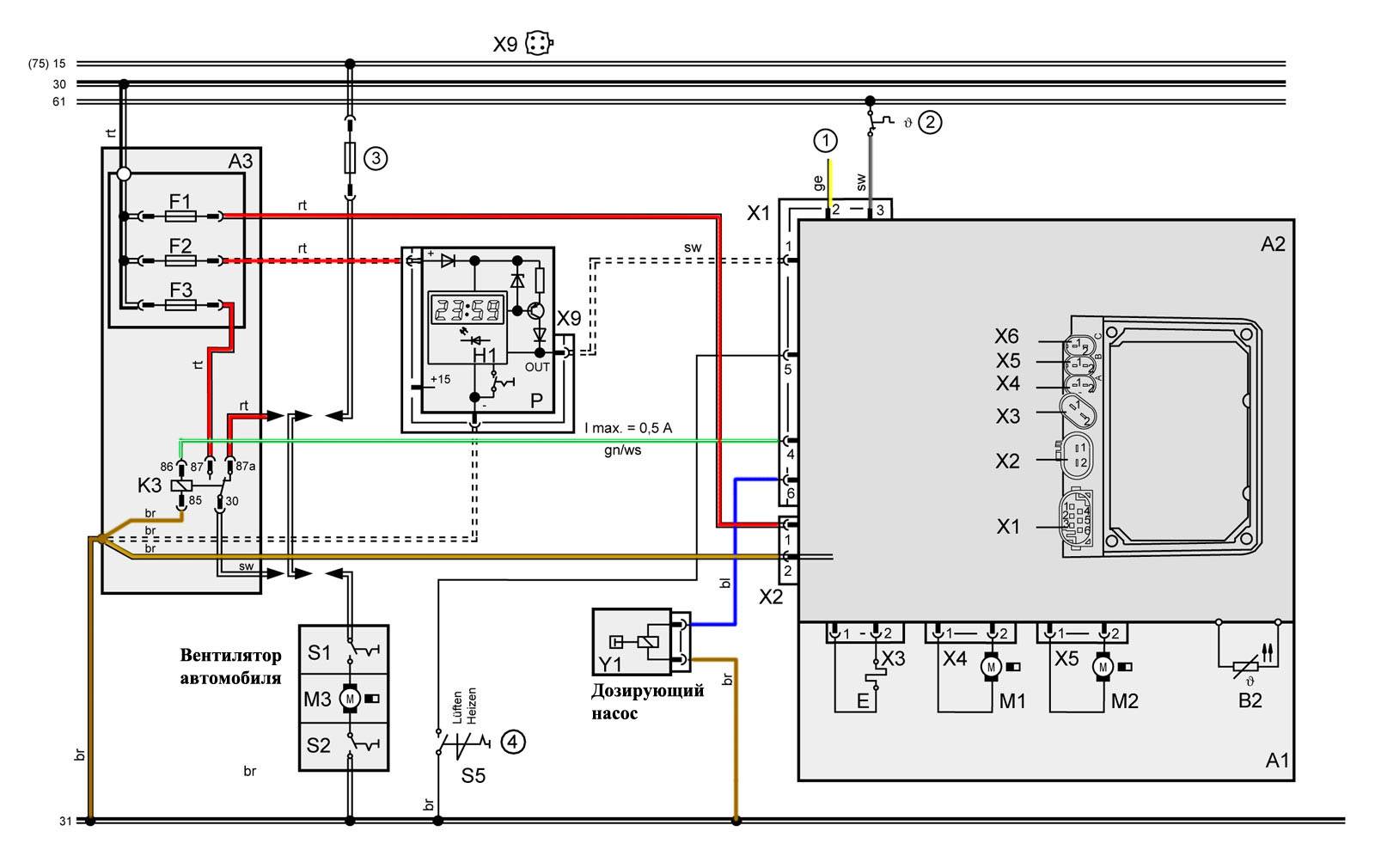 Схема отопителя, предпускового нагревателя/догревателя системы отопления ГАЗель Next.
