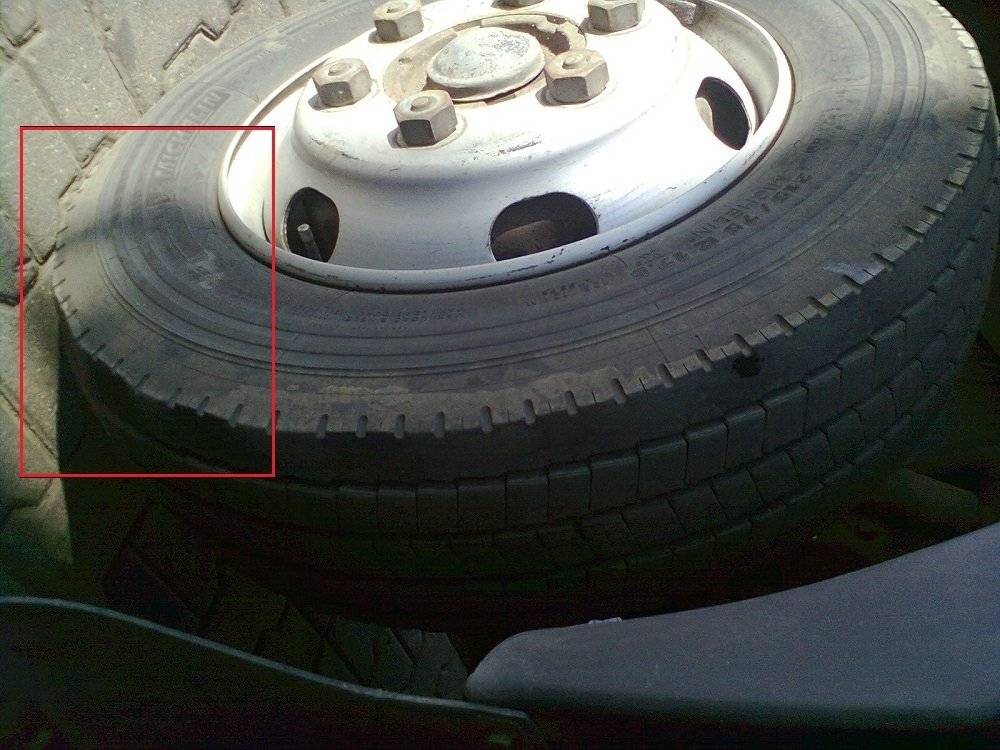 - Стертая внутренняя часть покрышек – иногда она может задевать о какой-нибудь элемент автомобиля и стираться.