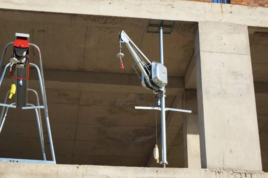 - Стационарные. Неподвижно фиксируются к поверхности или конструкции, например, к стене или балке. Используются локально для обслуживания конкретного участка.