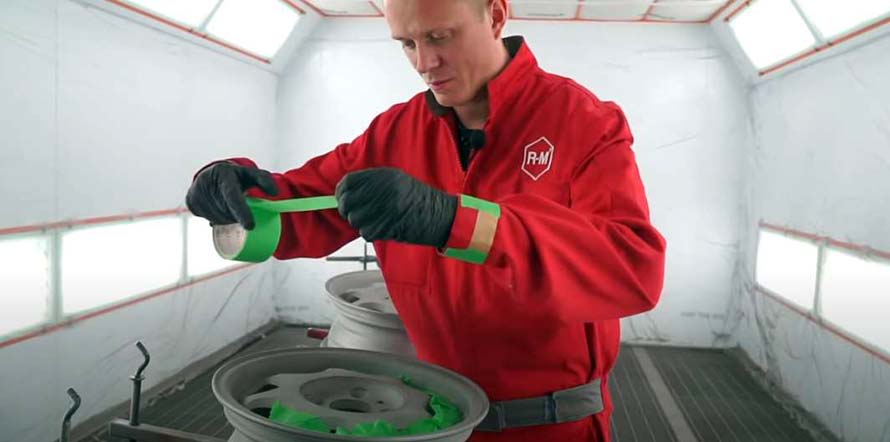 На очищенной поверхности можно оставить часть старого грунта в труднодоступных местах. Однако обязательно нужно убедиться, что он держится на диске надёжно. В случае, если вы красите диск неразбортированного колеса, контур обода по резине стоит заклеить малярным скотчем. Это избавит вас от последующего отмывания шины, на которую, так или иначе, попадут лакокрасочные компоненты. Последним этапом подготовки является обезжиривание поверхности диска растворителем или же «Уайт-спиритом».