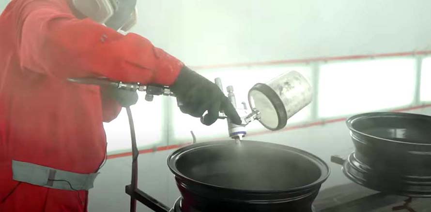 Краска наносится в 1-2 слоя, с полной просушкой каждого. Можно использовать краскопульта или баллон с краской. При окрашивании их нужно держать на расстоянии около 40 см от диска, повторяя его рельеф, чтобы расстояние не менялось, и краска наносилась равномерно.