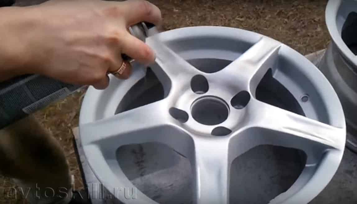 - Нанесение шпаклевки, если колесо имеет явные дефекты.