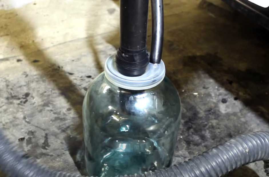 - Включите пылесос на всасывание тем самым создавая разряжение в банке.
