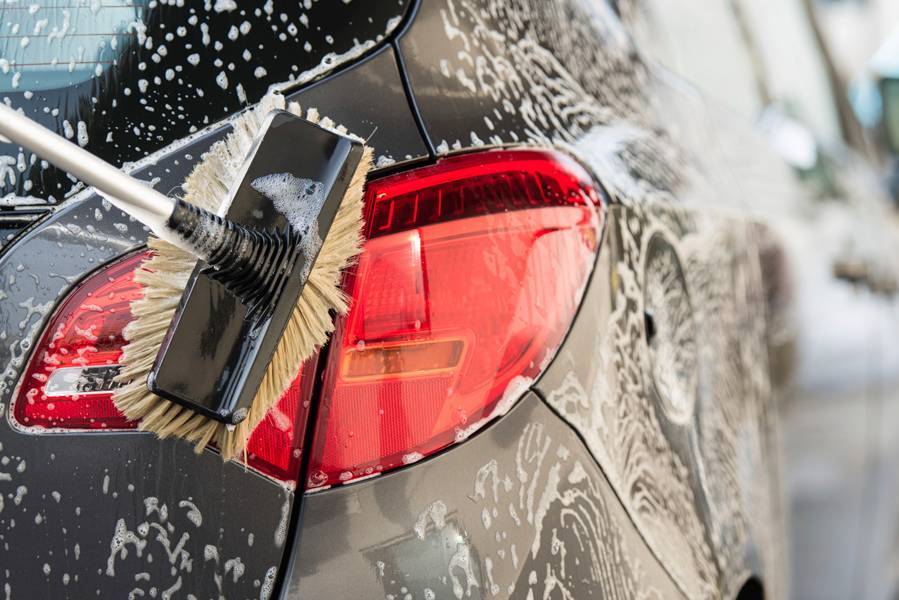 - После того как шампунь побудет некоторое время на поверхности автомобиля, и поможет отъесть грязь, необходимо взять щетку с очень мягким ворсом и пройтись по автомобилю, потереть