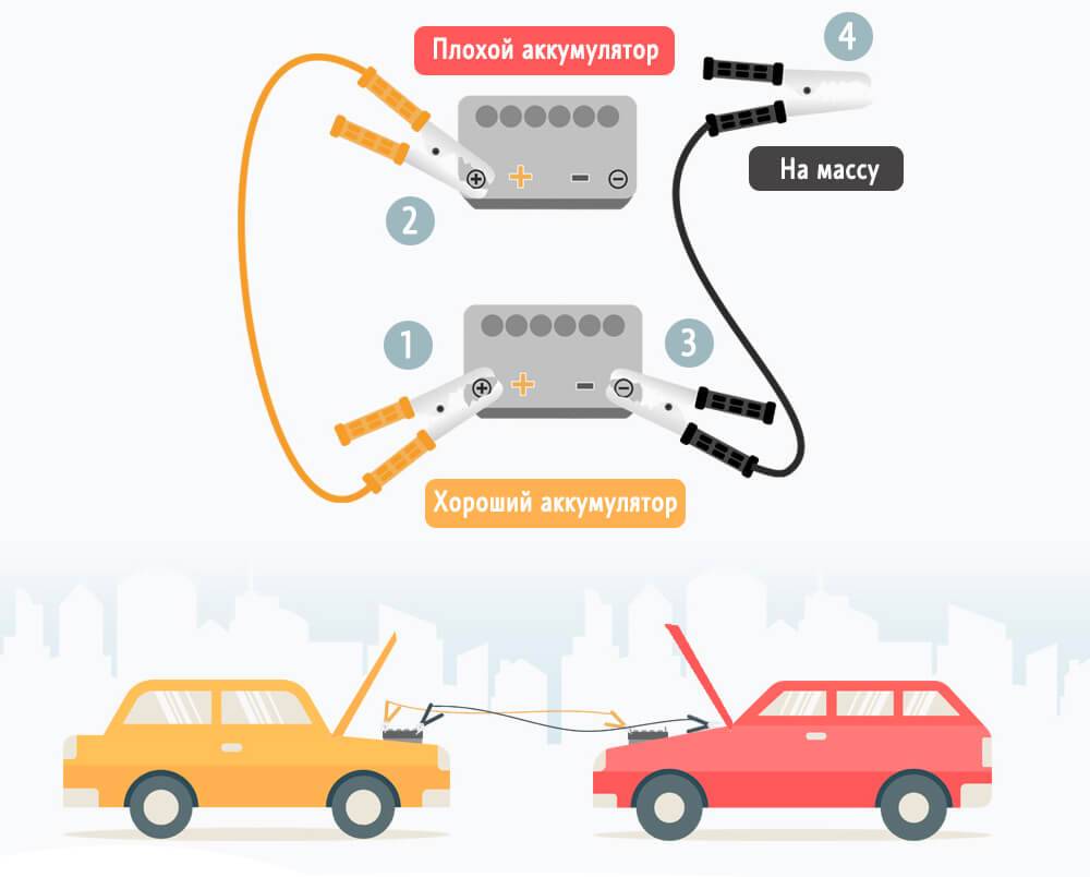 Схема прикуривания от другого автомобиля схема