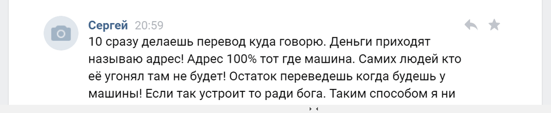 - Обещает сначала показать машину, а когда вы приезжаете, просит перевести деньги через терминал. Оправдывается тем, что боится и нужно подстраховаться.