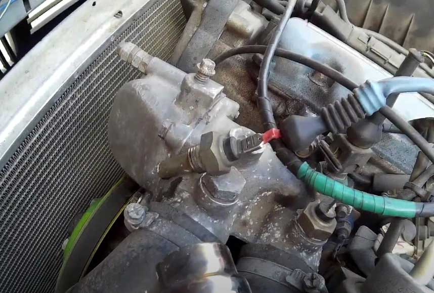 Для проверки рекомендуется демонтаж элемента (ключ рожковый на 19). Для этого нужно дождаться охлаждения мотора, отбросить «минус» на АКБ и слить антифриз.