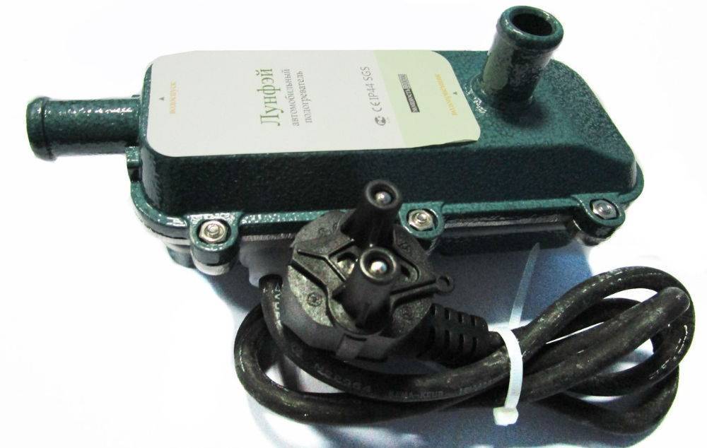 Что касается работы, такой нагреватель подогревает охлаждающую жидкость двигателя за счет установки термоэлемента. Если просто, ОЖ циркулирует по малому кругу, куда также вмонтирован нагревательный элемент. За циркуляцию антифриза при неработающем двигателе отвечает помпа, являющаяся составным элементом подогревателя.