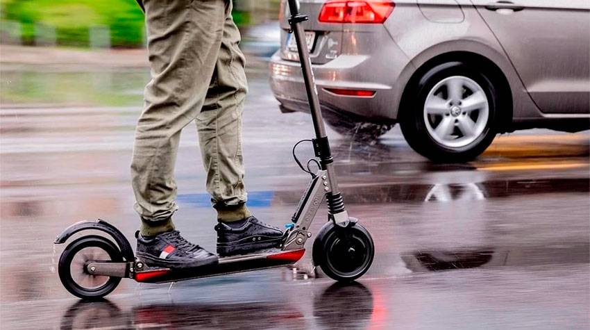 - Погодные условия. Перемещаться на электрическом самокате стоит исключительно при отсутствии дождя и сильного встречного ветра. В ином случае электросамокат просто технически не сможет показывать максимальную скорость. Да и безопасность движения окажется под угрозой.