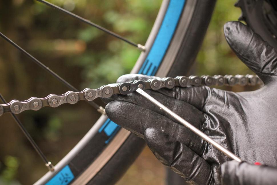 Обратите внимание на цепь, обрабатывая щеткой переключатели и протирая звенья, чтобы выбить комки грязи